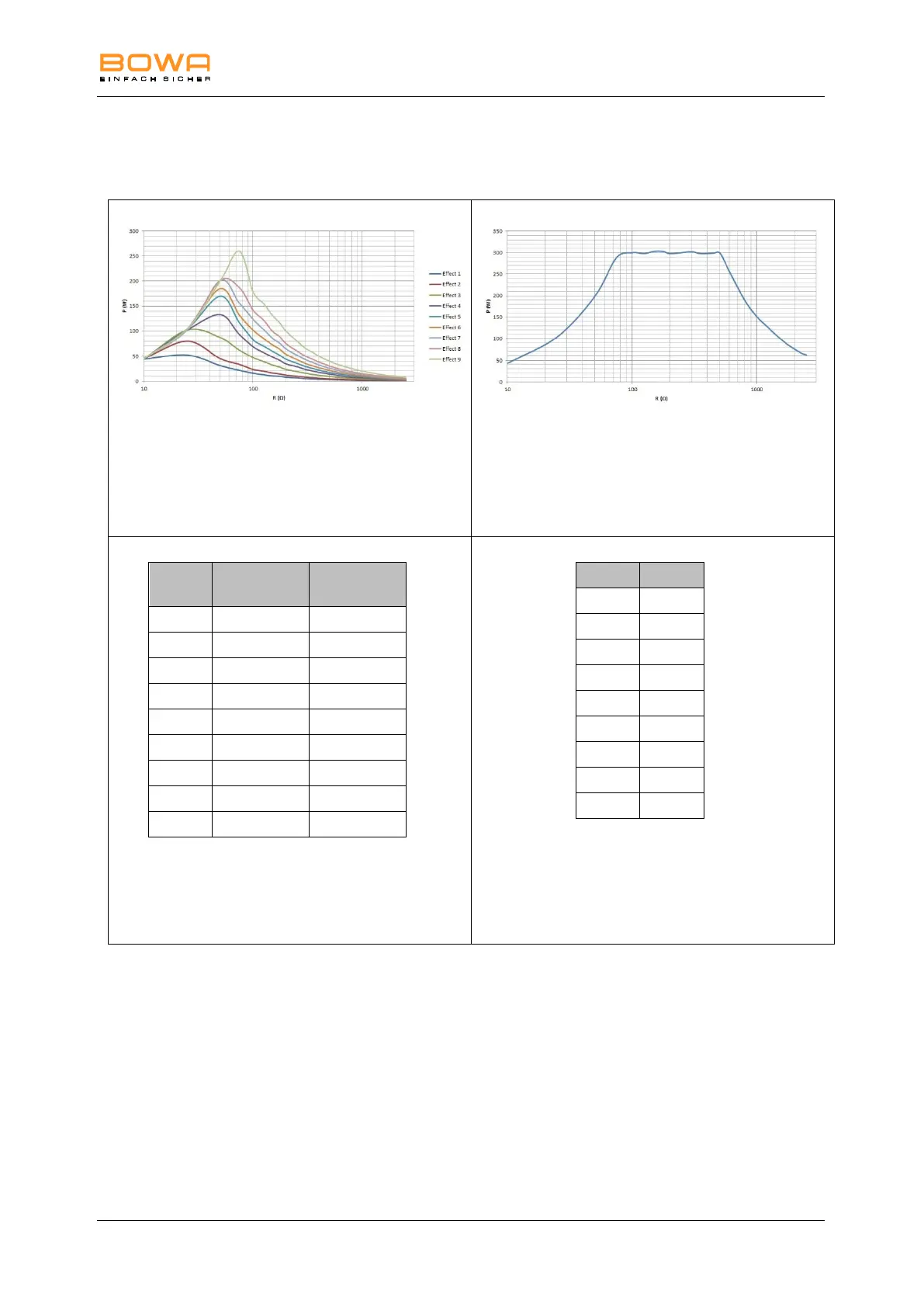 Table of power output P [W] as a