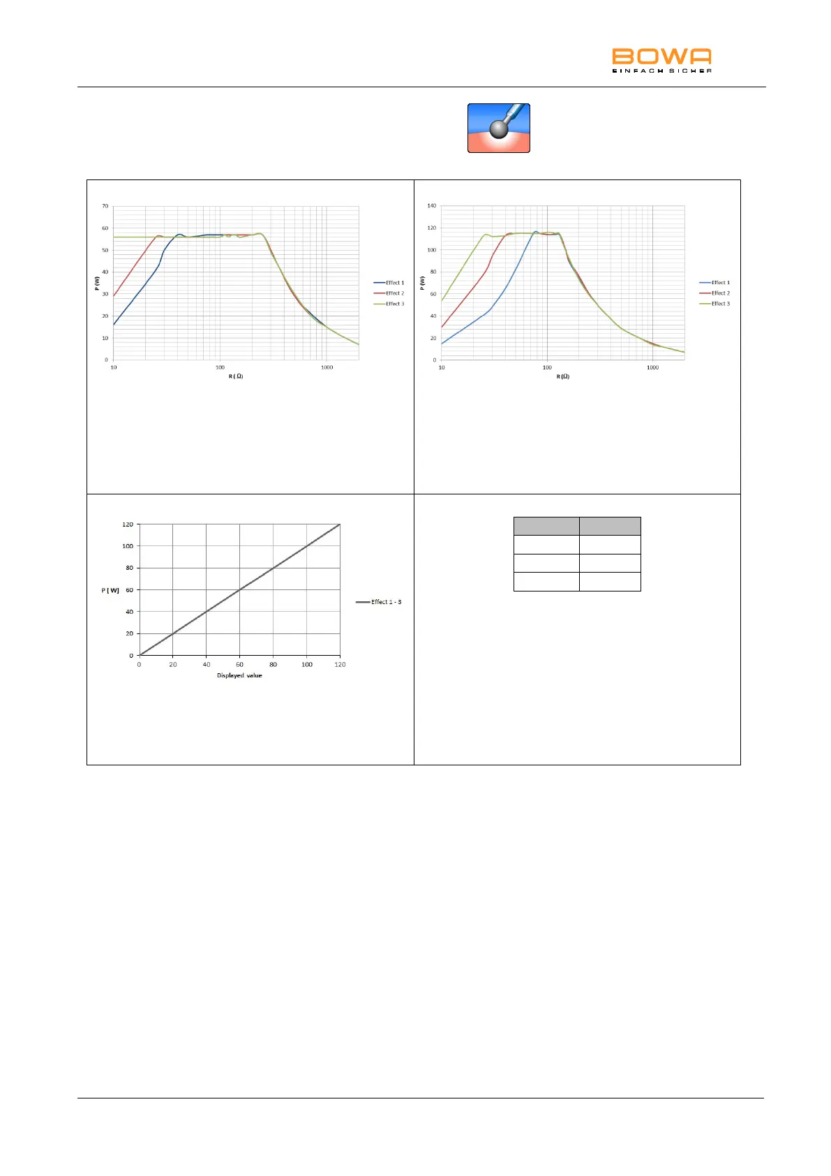 Table of HF output voltage U [Vp] as a