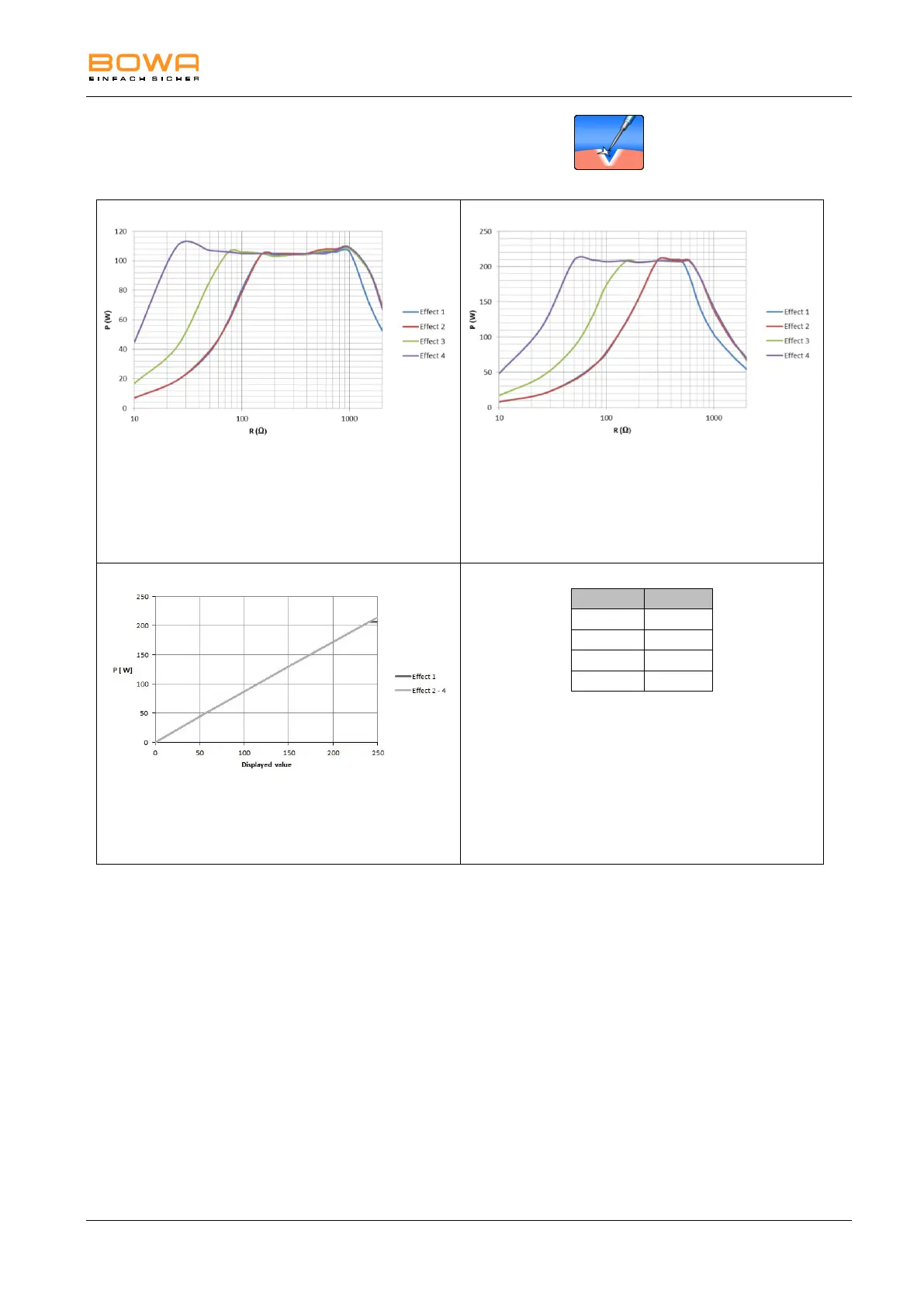 Diagram of power output P [W] as a