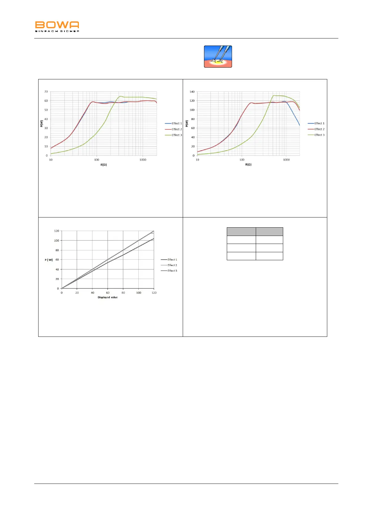 Diagram of power output P [W] as a