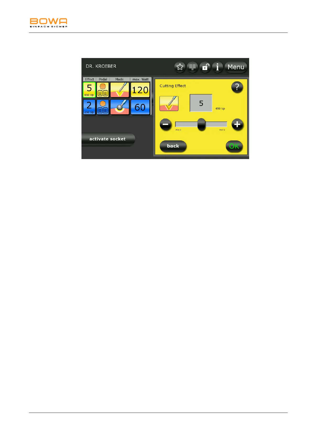 1. To select the effect for monopolar cutting, first select one of the two