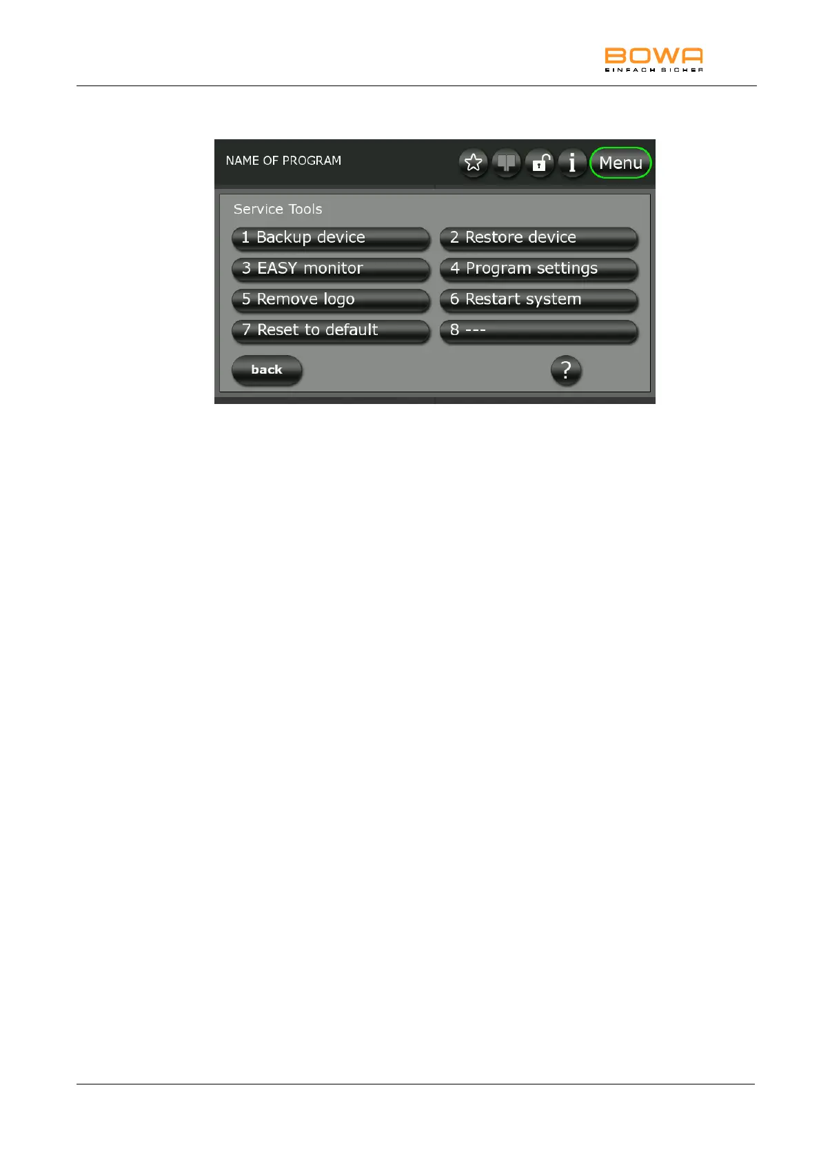 Use "Restore device" to transfer saved device settings from a BOWA USB