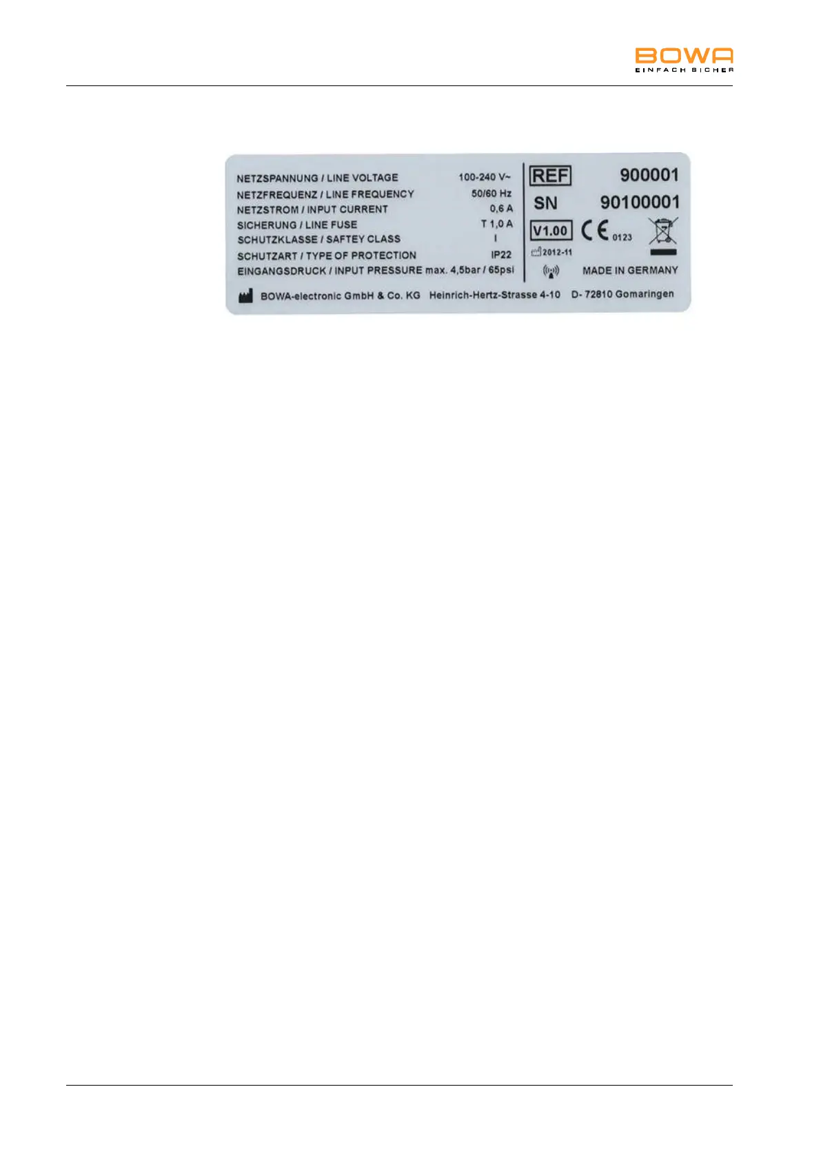 Figure 3-1: ARC PLUS rating label