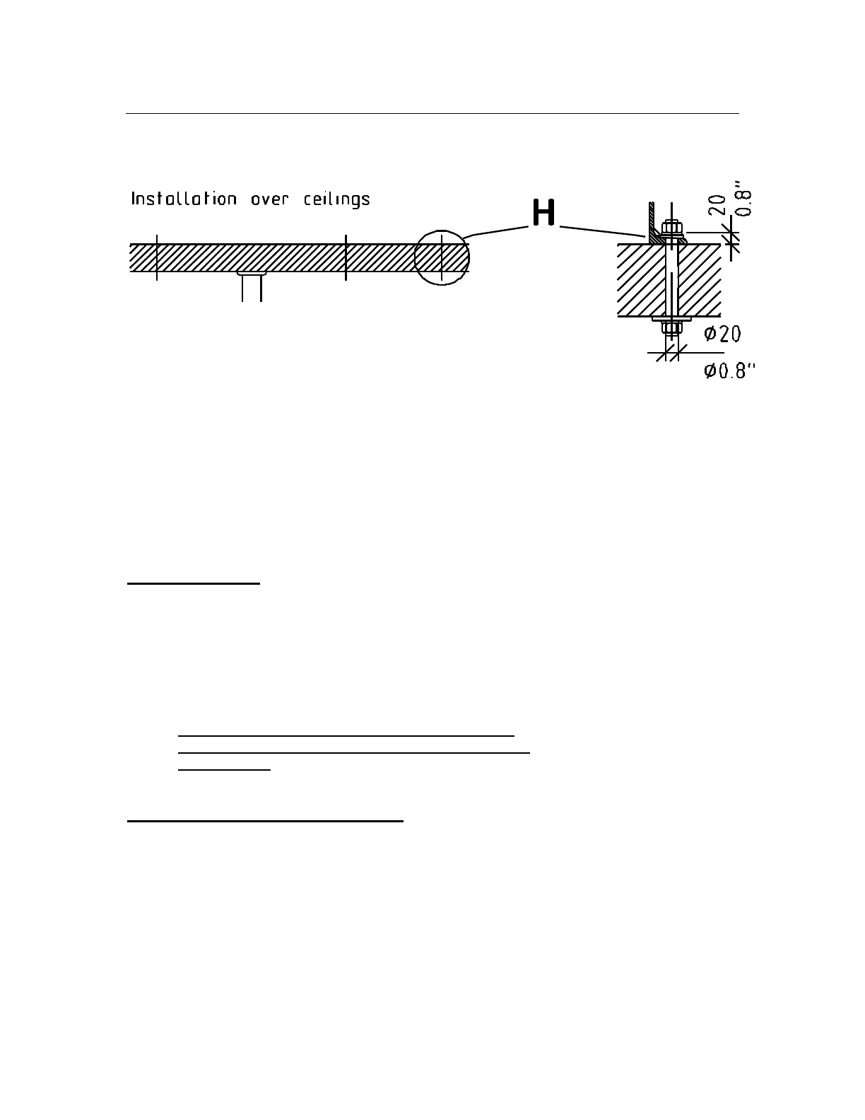 Ceiling borehole 20 mm (3/4 inch) ø for through-bolts, length H