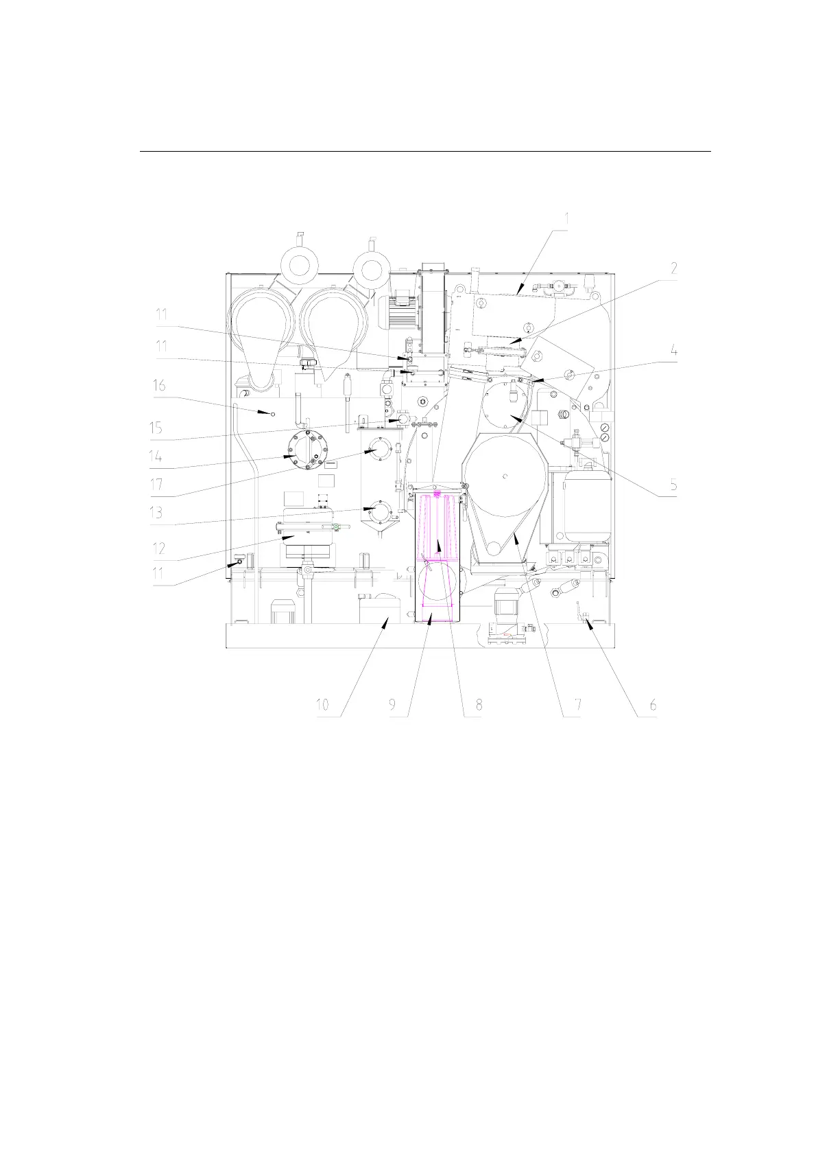 1 Inspection cover, airshaft 14 Sight-glass, still