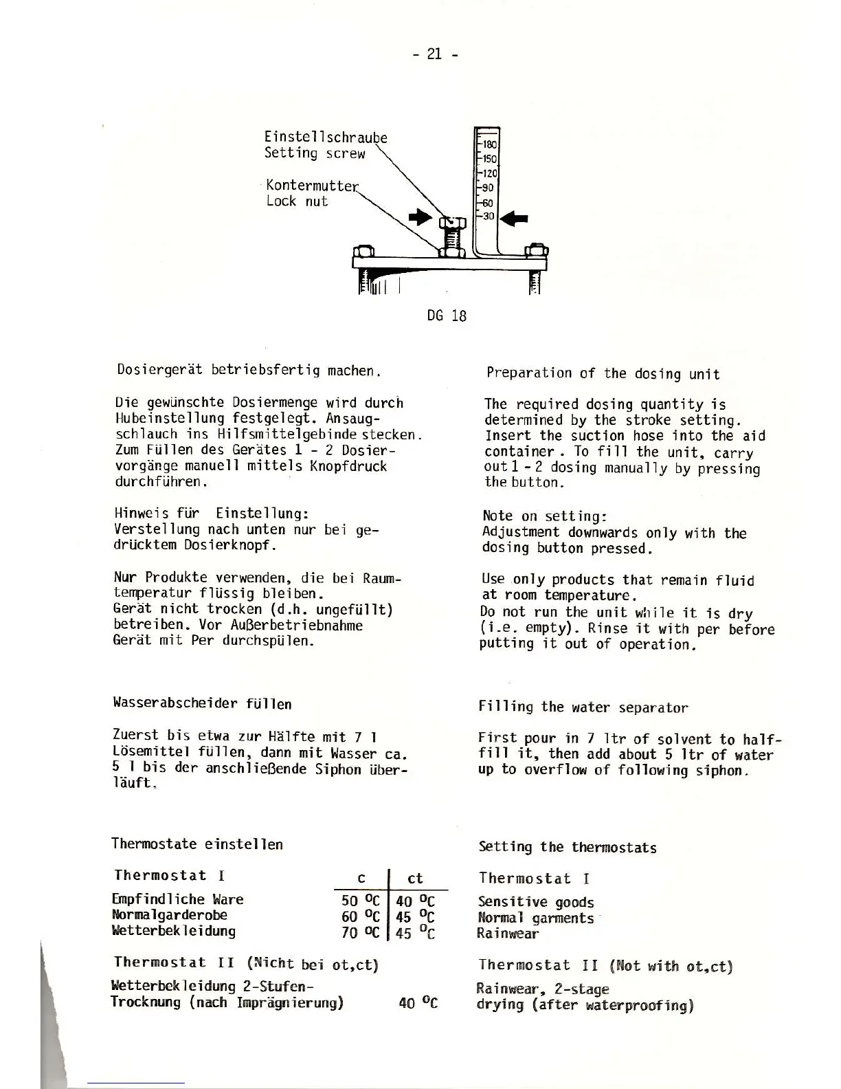 BÖWE P414 - Preparaton of the Dosing Unit; Filling the Water Separator; Setting the Thermostats