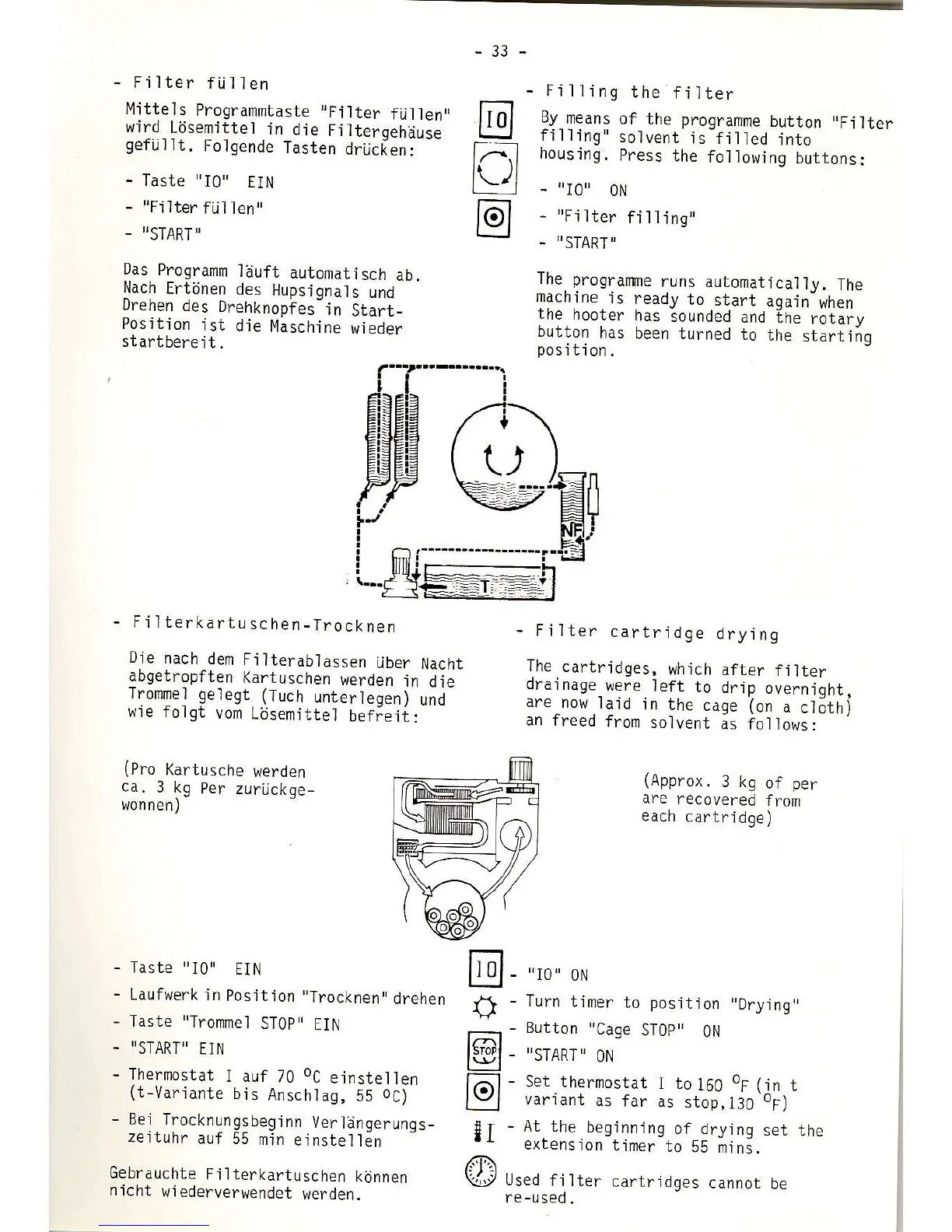 BÖWE P414 - Filling the Filter; Filter Cartridge Drying