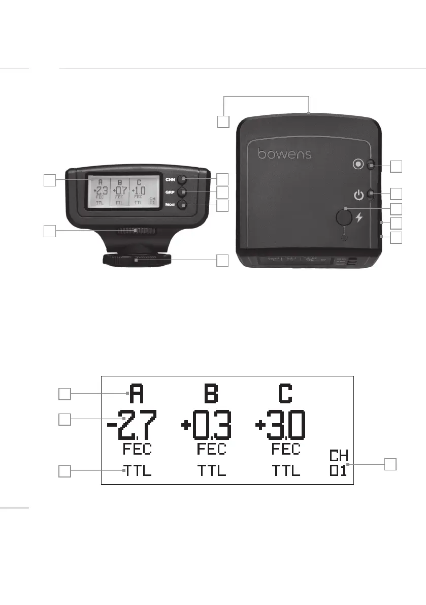 Bowens XMTR - XMTR and Display Overview; Device Components and Display