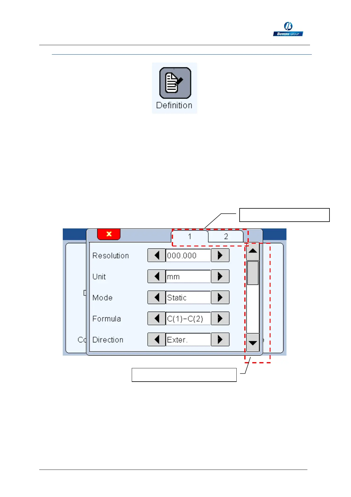 This window is divided in 2 parts for the configuration of the 2 measurement
