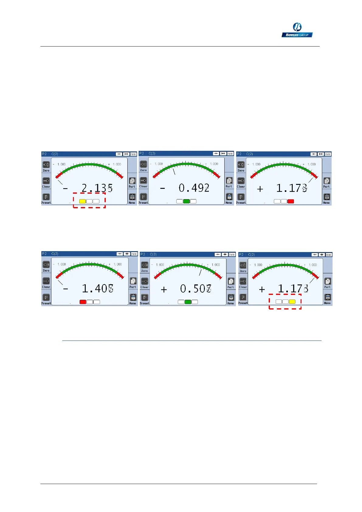 On the measuring screen, a yellow indicator shows when the part is too small (so