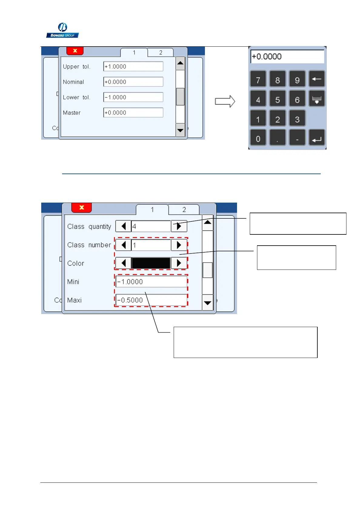 according to their position in the tolerance interval. The top bar of the display, which