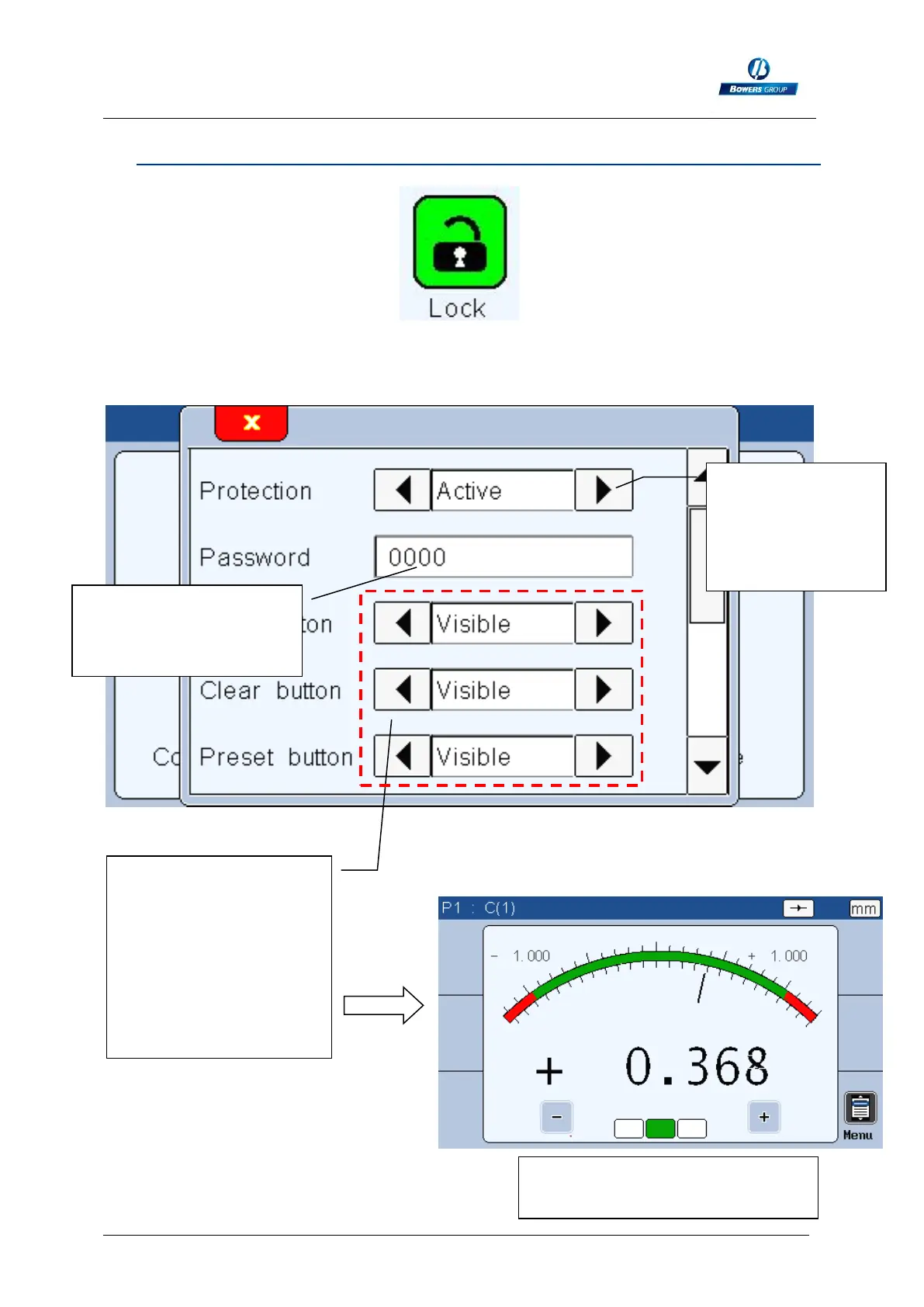 This screen allows to lock by password some functions of the M3