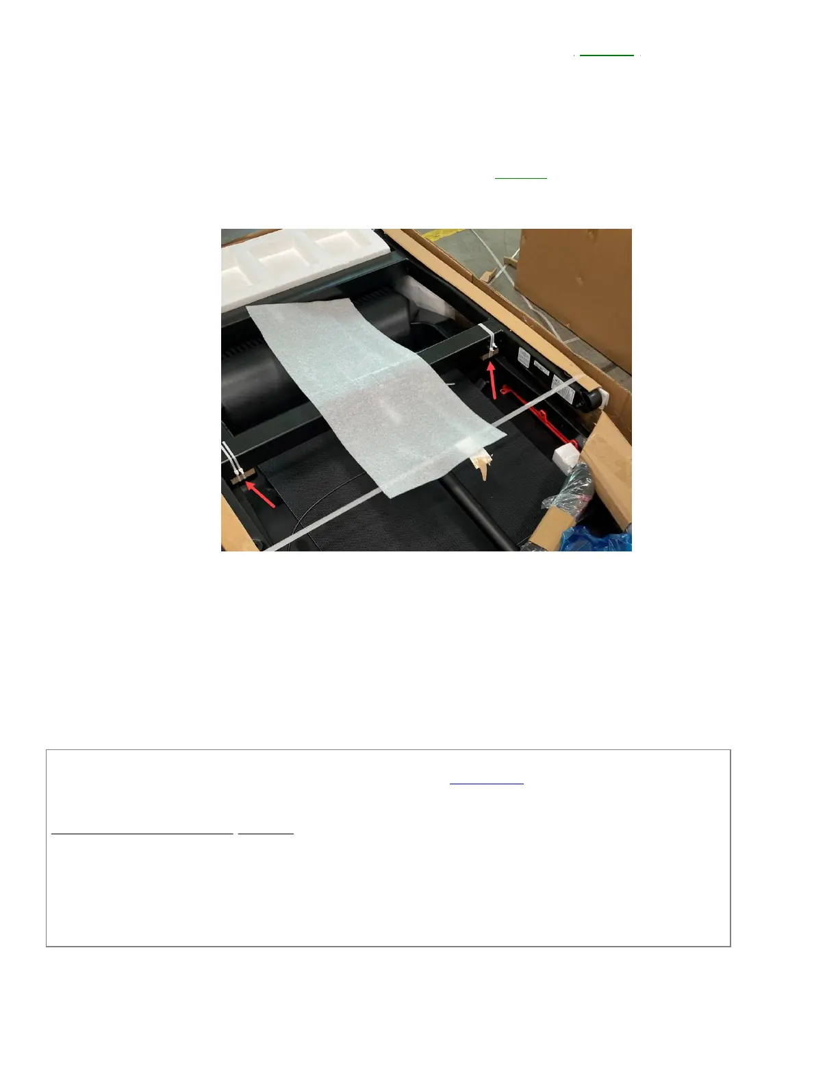 Wood blocks are used to support the base frame during the shipping process (red arrows pointing beneath the cross bar).