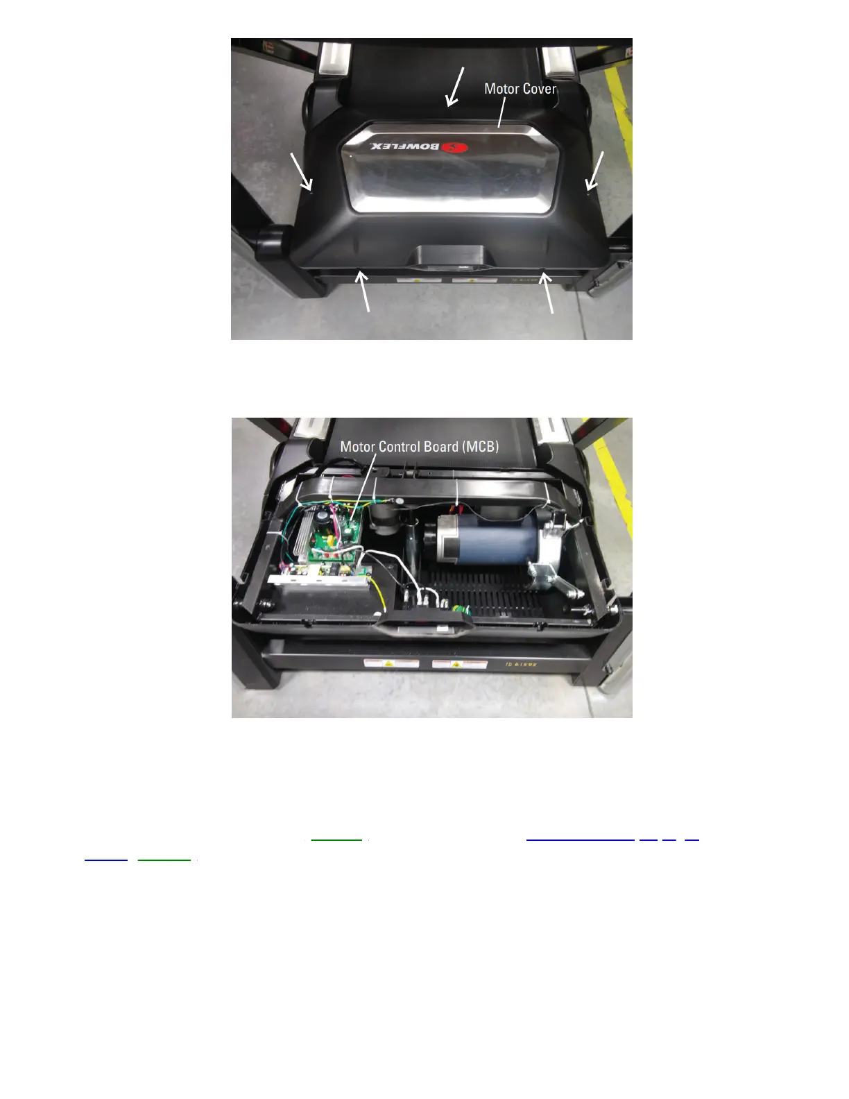 The white arrows indicate the locations of the screws to remove to take the motor and MCB cover off.