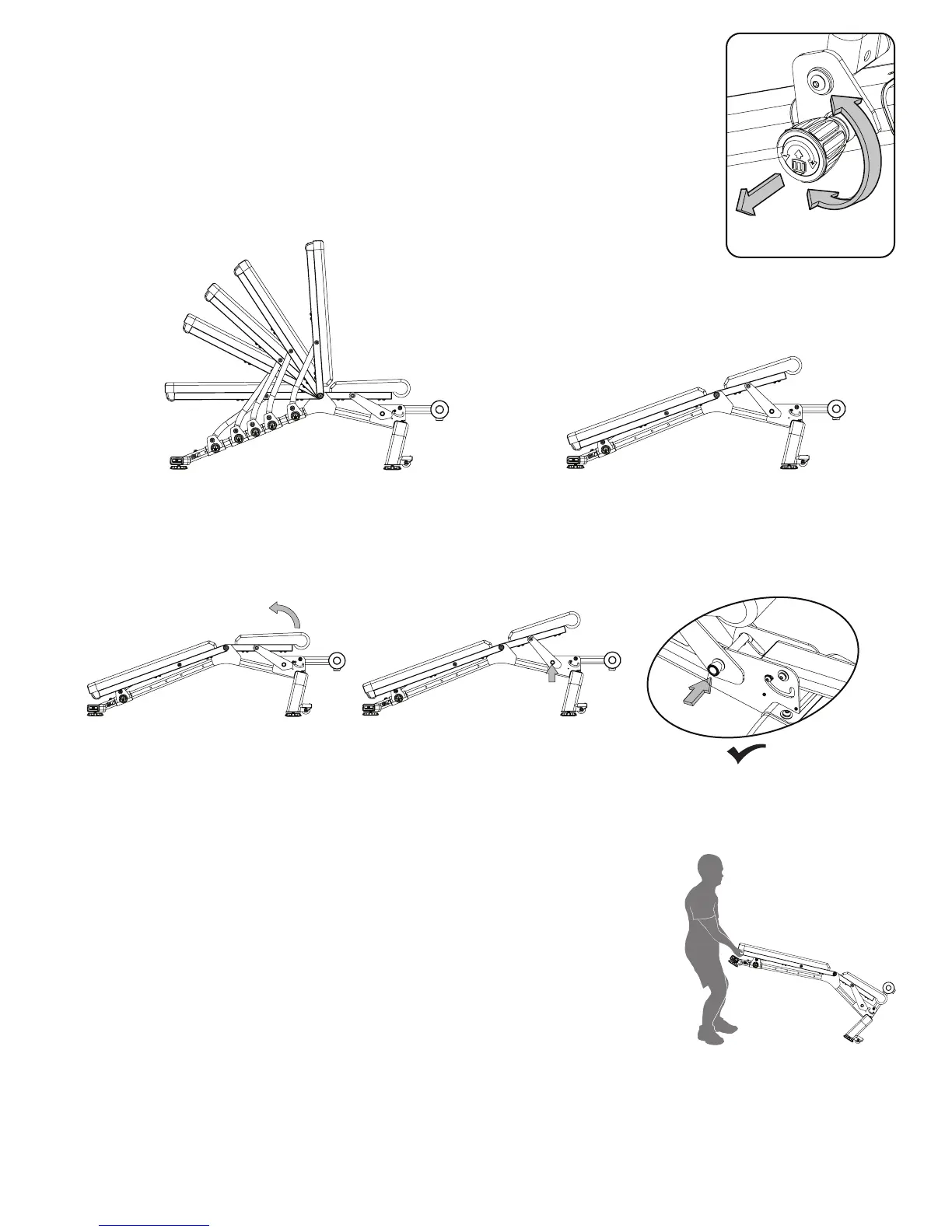Loosen and pull the Pop Pin Knob on the Bench Rail. Adjust the Bench to the desired angle. Release the Pop Pin
