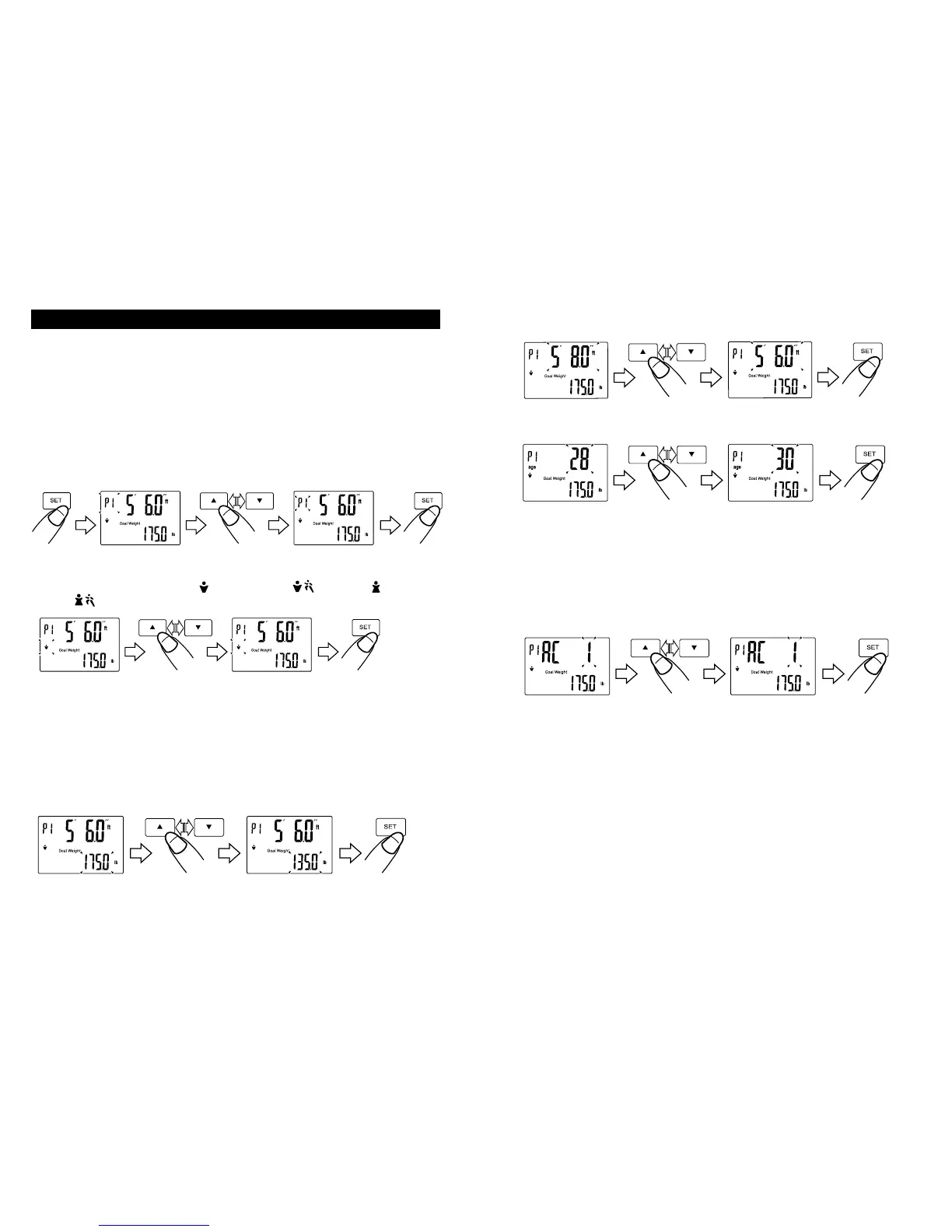 Press “▲” or “▼” to change the goal weight number. Press “SET” to conrm. Height