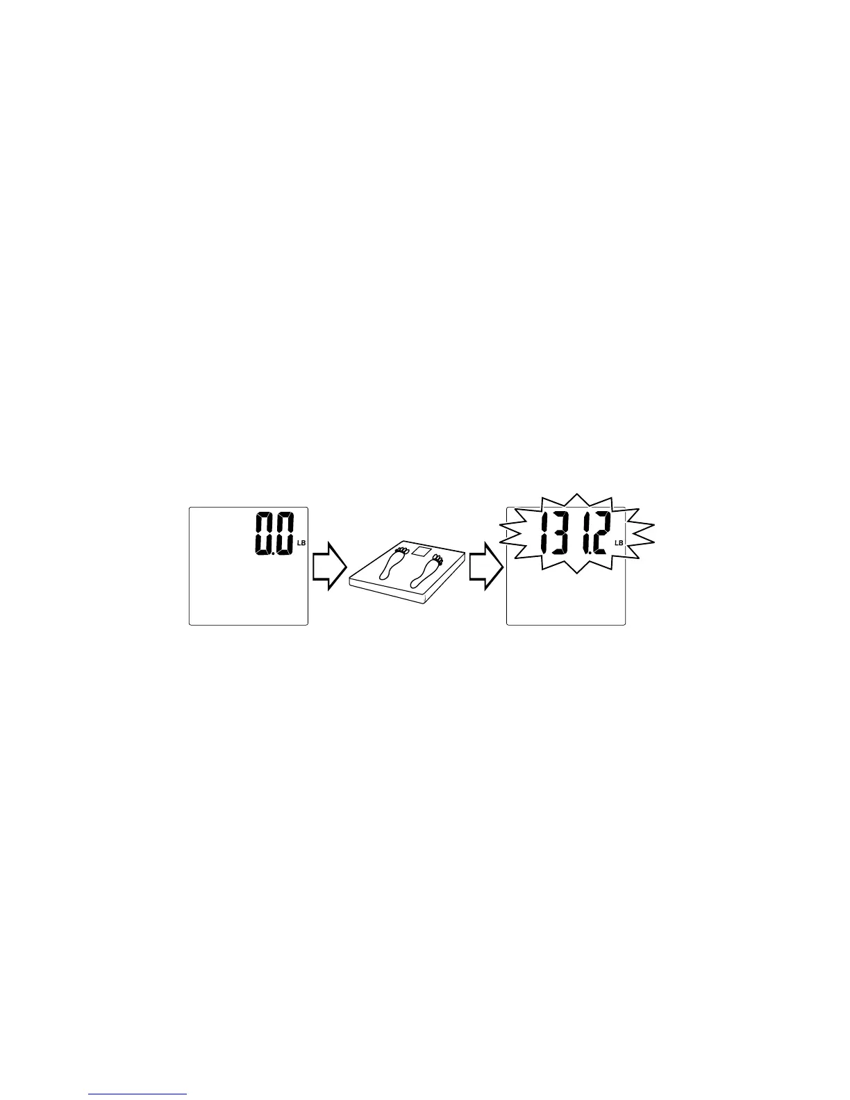 Scale shows zero. Step on scale. Weight displays.