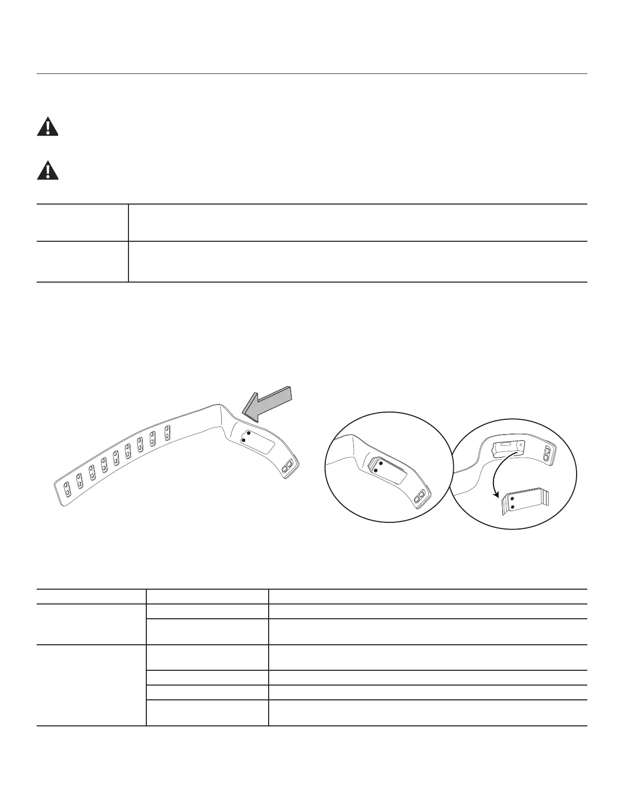 Daily: Examine the exercise device and charging pod for loose, broken, damaged, or worn parts. Do not use if found
