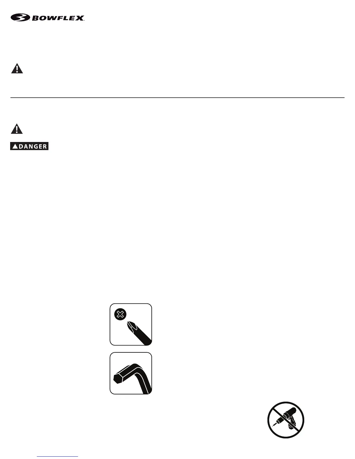 • If replacement parts are necessary, use only genuine Nautilus replacement parts and hardware. Failure to use genuine replacement parts can cause a