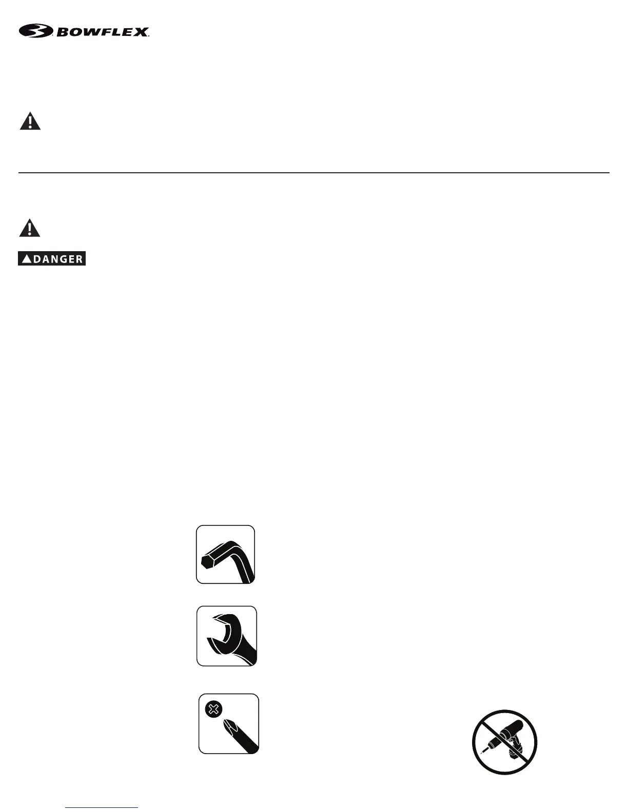 • If replacement parts are necessary, use only genuine Nautilus replacement parts and hardware. Failure to use genuine replacement parts can cause a
