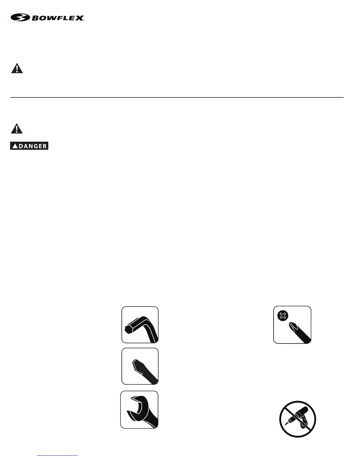 • If replacement parts are necessary, use only genuine Nautilus replacement parts and hardware. Failure to use genuine replacement parts can cause a
