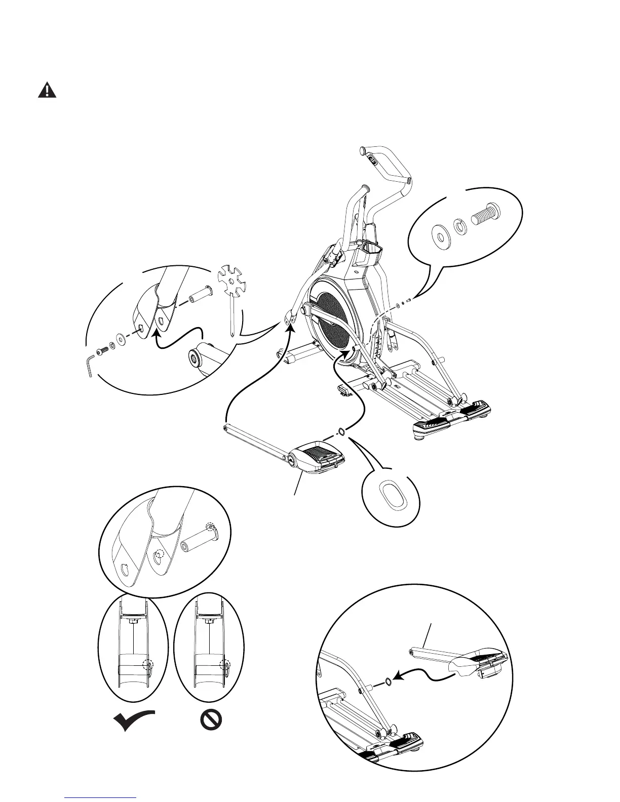 In order to avoid possible serious injury, when inserting the end of the Pedal into the Lower Handlebar Arm be careful to avoid