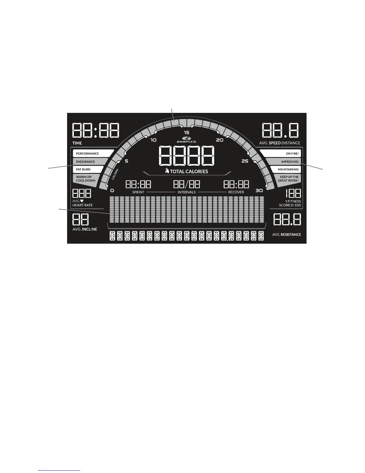 Push to pause a workout, exit the User Prole or Machine Settings mode, or end a paused workout.