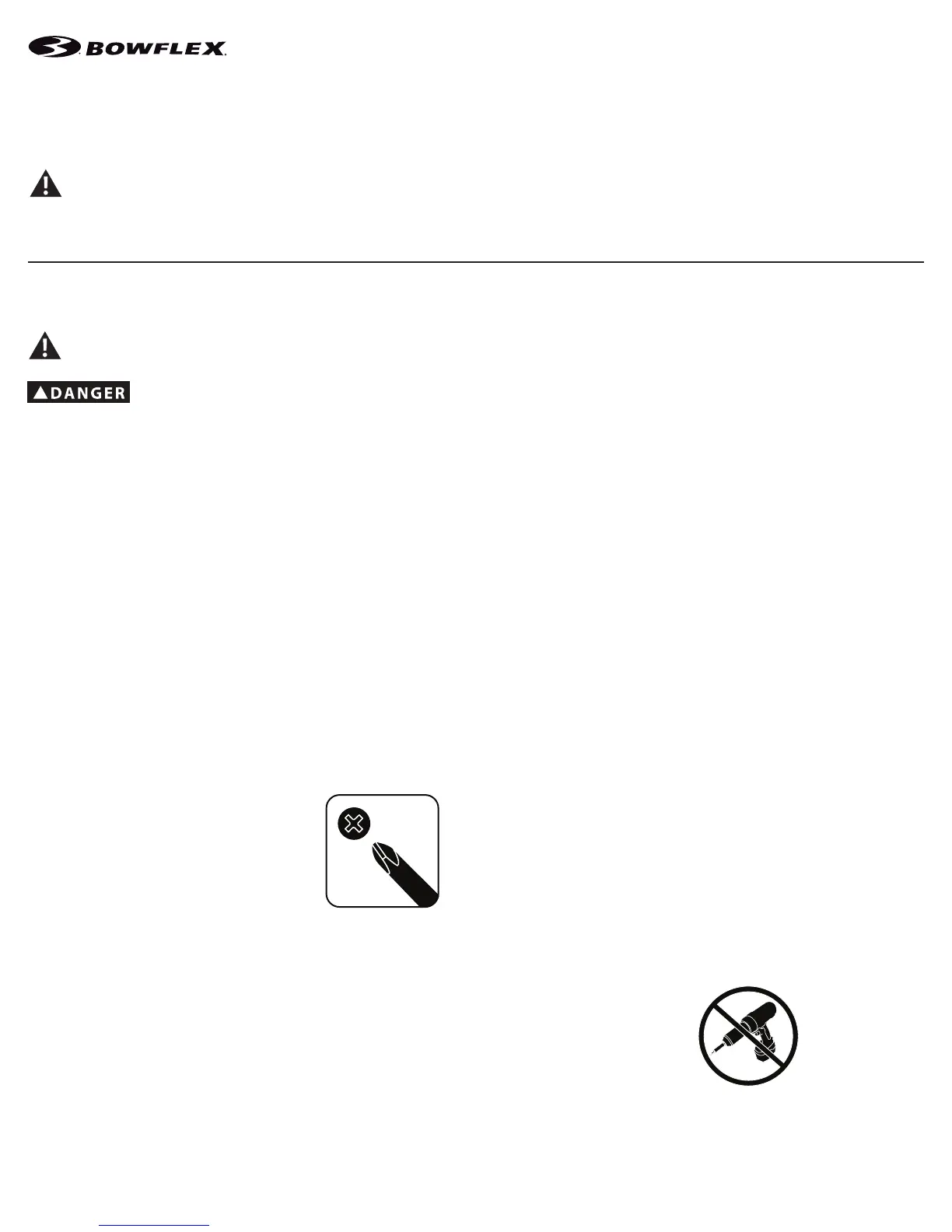 • If replacement parts are necessary, use only genuine Nautilus replacement parts and hardware. Failure to use genuine replacement parts can cause a