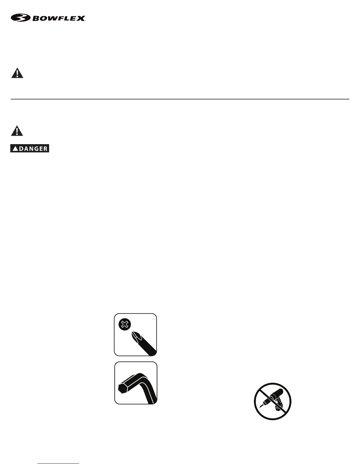 • If replacement parts are necessary, use only genuine Nautilus replacement parts and hardware. Failure to use genuine replacement parts can cause a