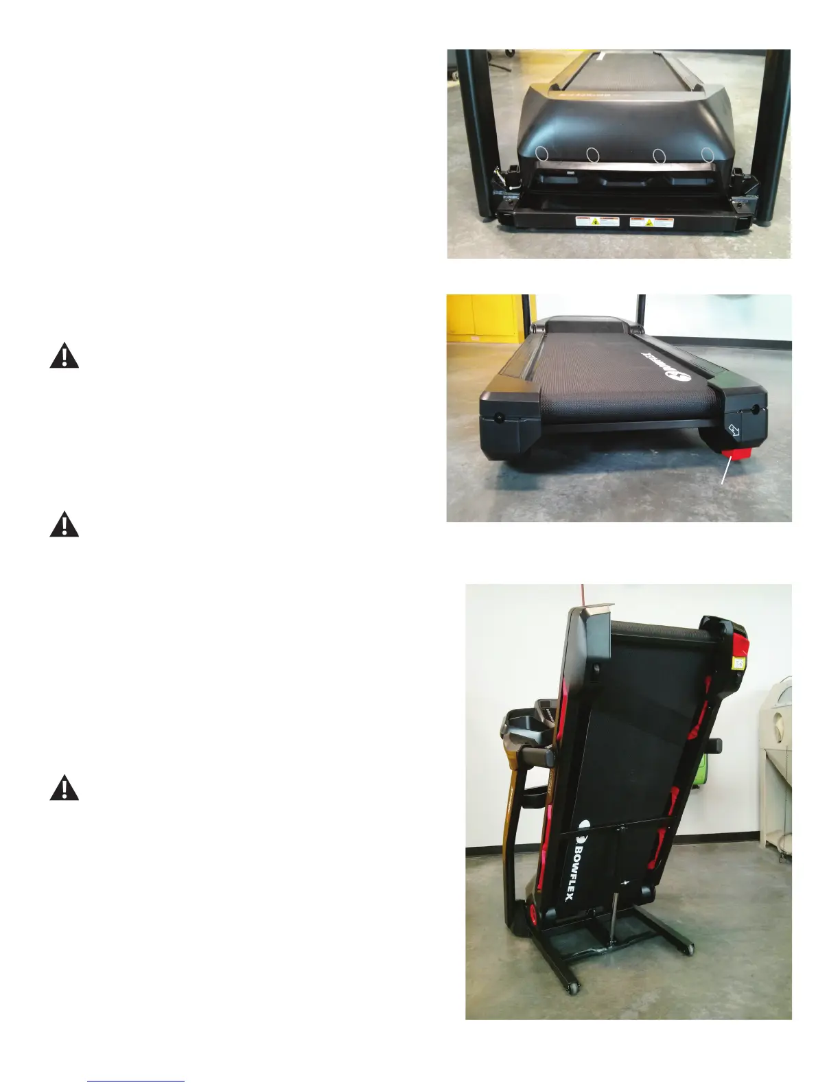 Do not lean against the treadmill when it is folded. Do not put