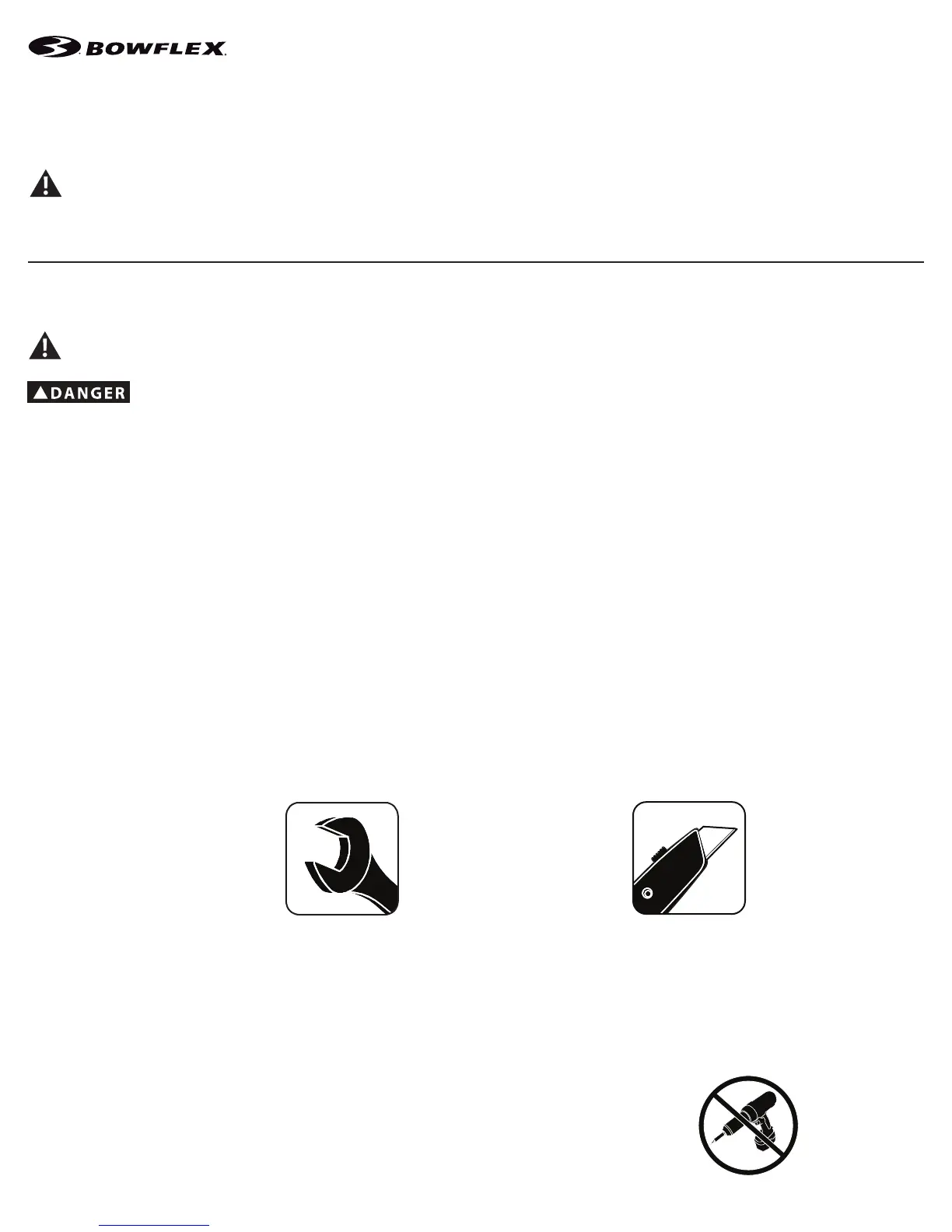 • If replacement parts are necessary, use only genuine Nautilus replacement parts and hardware. Failure to use genuine replacement parts can cause a