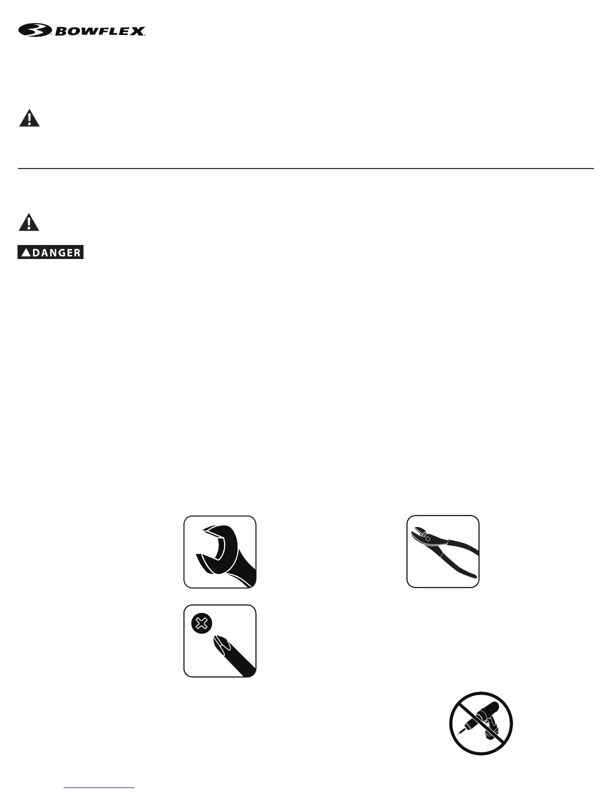 • If replacement parts are necessary, use only genuine Nautilus replacement parts and hardware. Failure to use genuine replacement parts can cause a