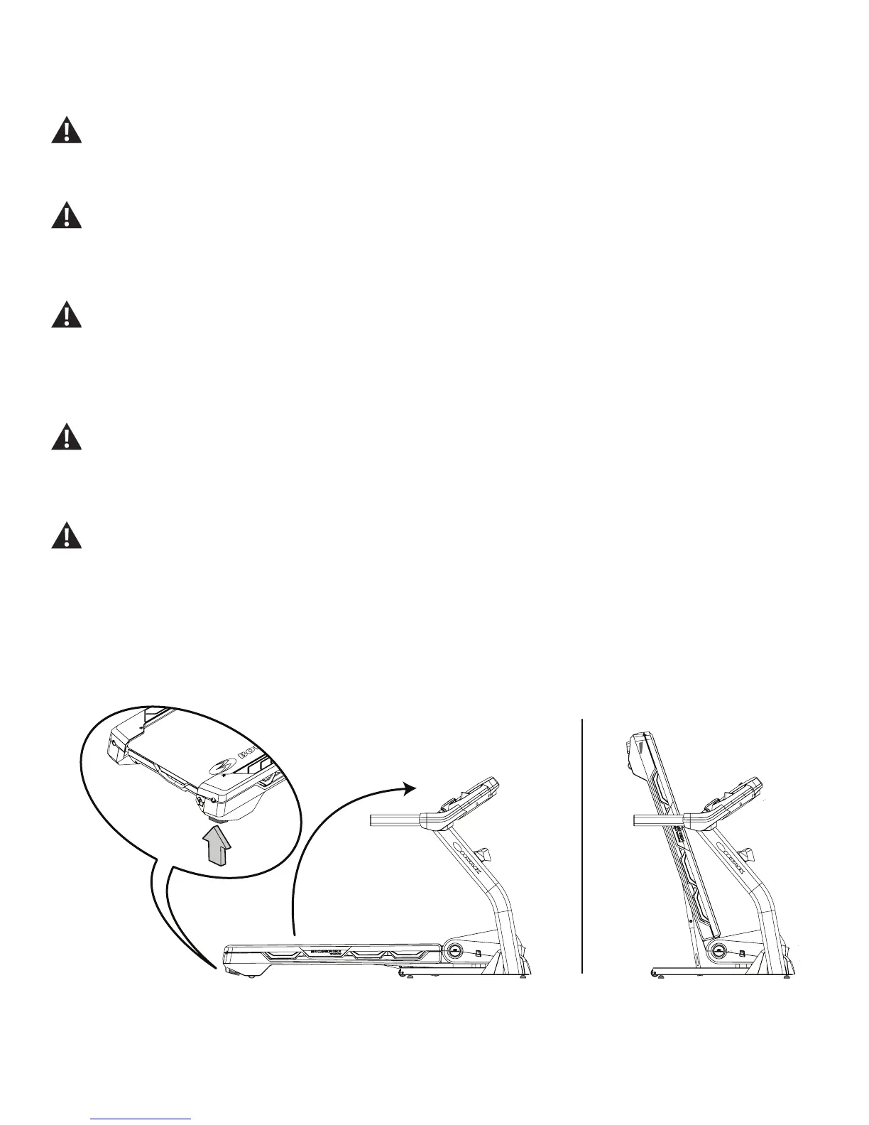 4. You must fold the treadmill before you move it. Never move the treadmill if it is not folded.