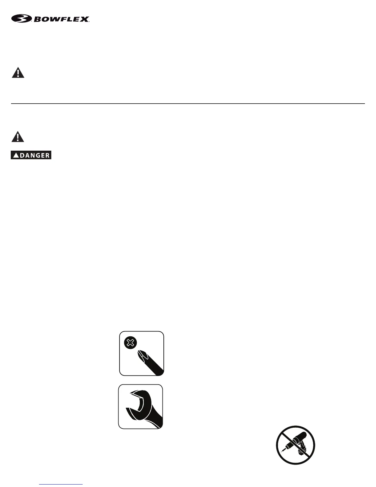 • If replacement parts are necessary, use only genuine Nautilus replacement parts and hardware. Failure to use genuine replacement parts can cause a