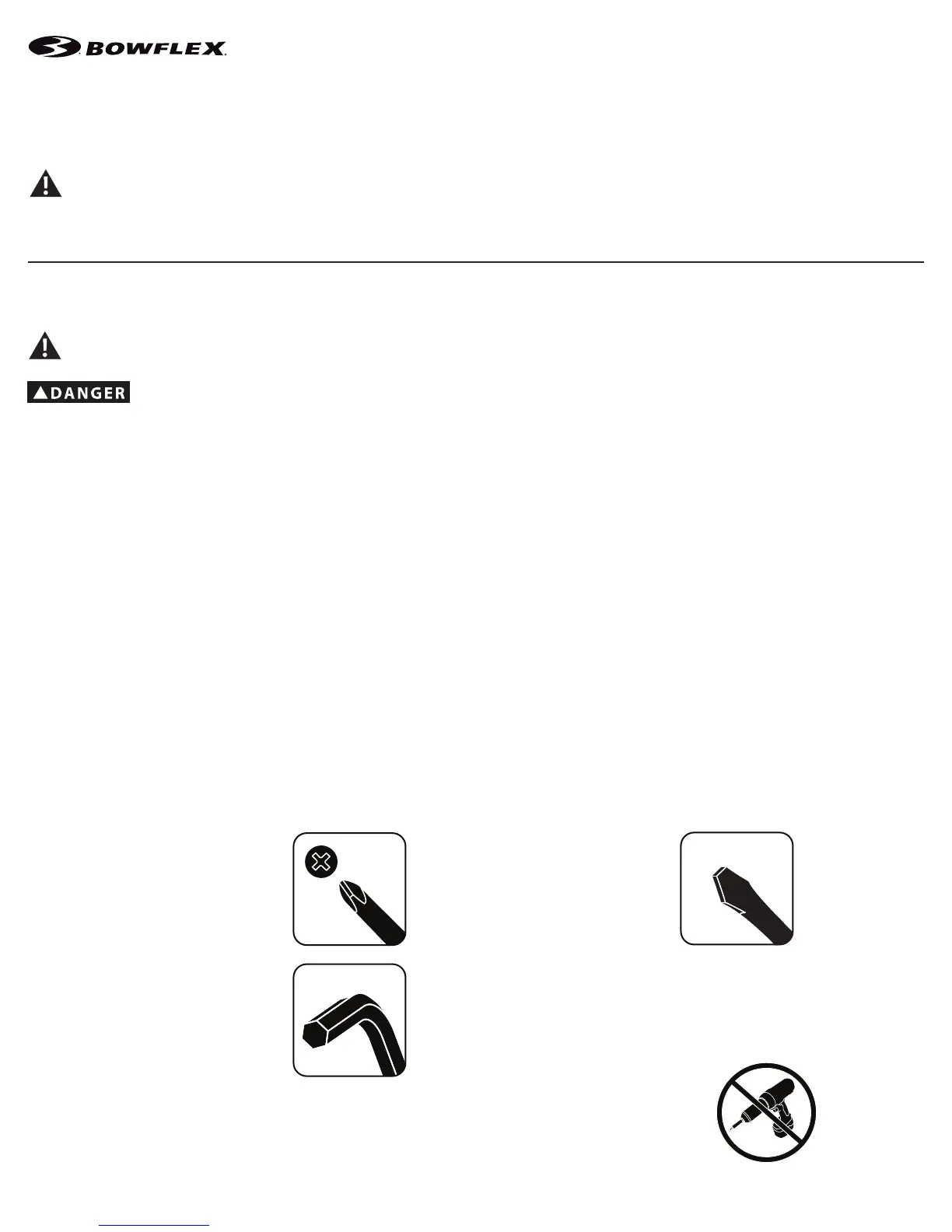 • If replacement parts are necessary, use only genuine Nautilus replacement parts and hardware. Failure to use genuine replacement parts can cause a