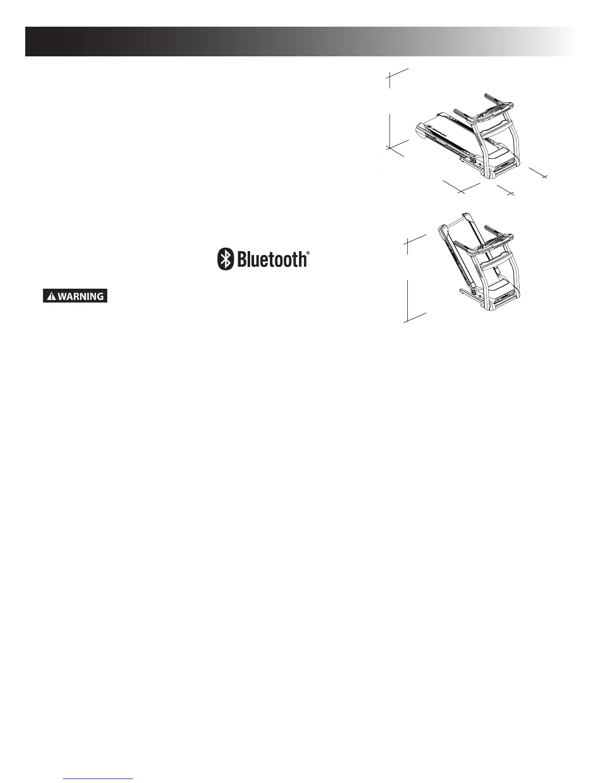 a minimum workout area of 86.5” x 163.5” (218.7 cm x 415.3 cm). Be sure that the workout space you are utilizing has adequate height clearance,