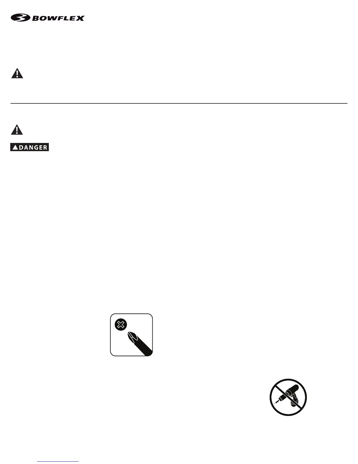 • If replacement parts are necessary, use only genuine Nautilus replacement parts and hardware. Failure to use genuine replacement parts can cause a