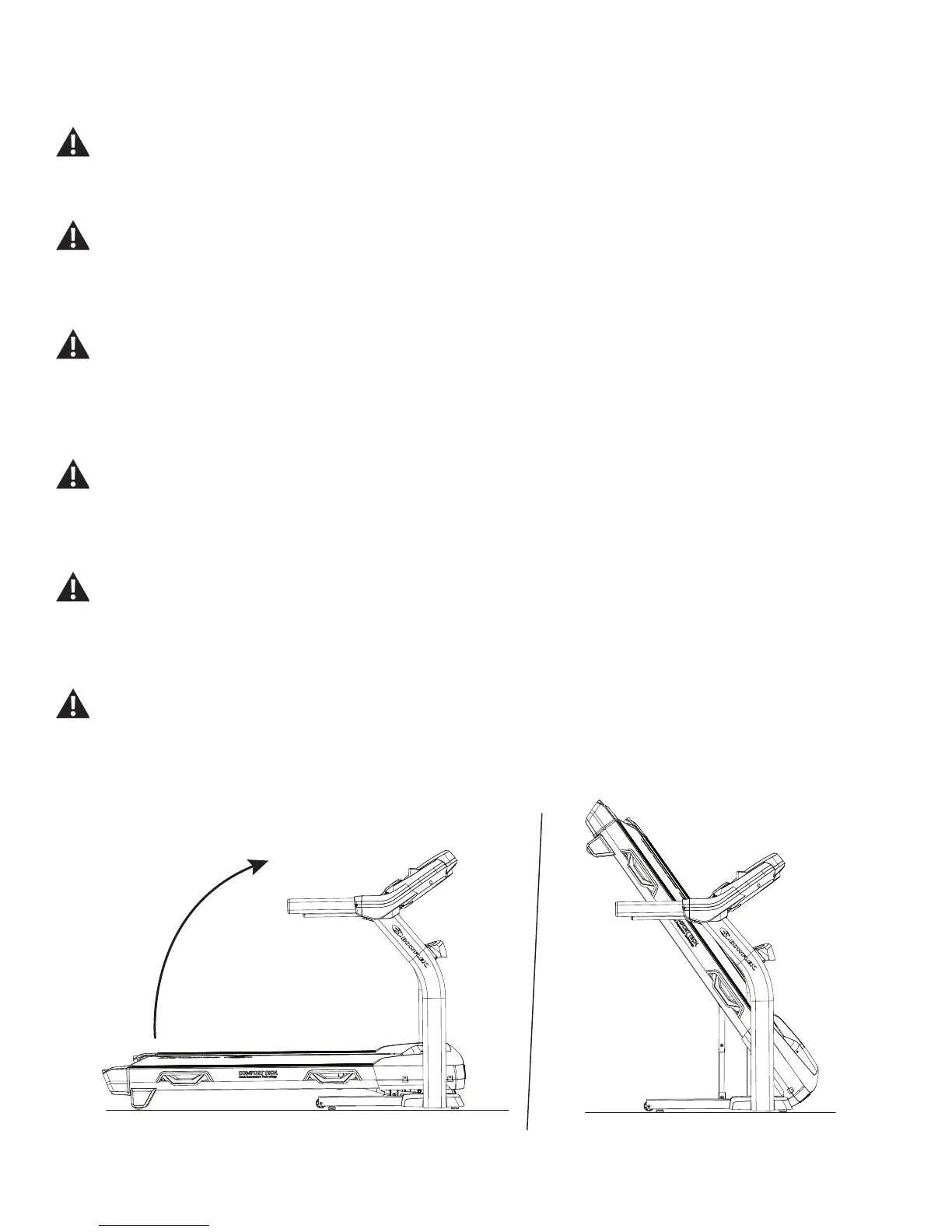 4. You must fold the treadmill before you move it. Never move the treadmill if it is not folded.