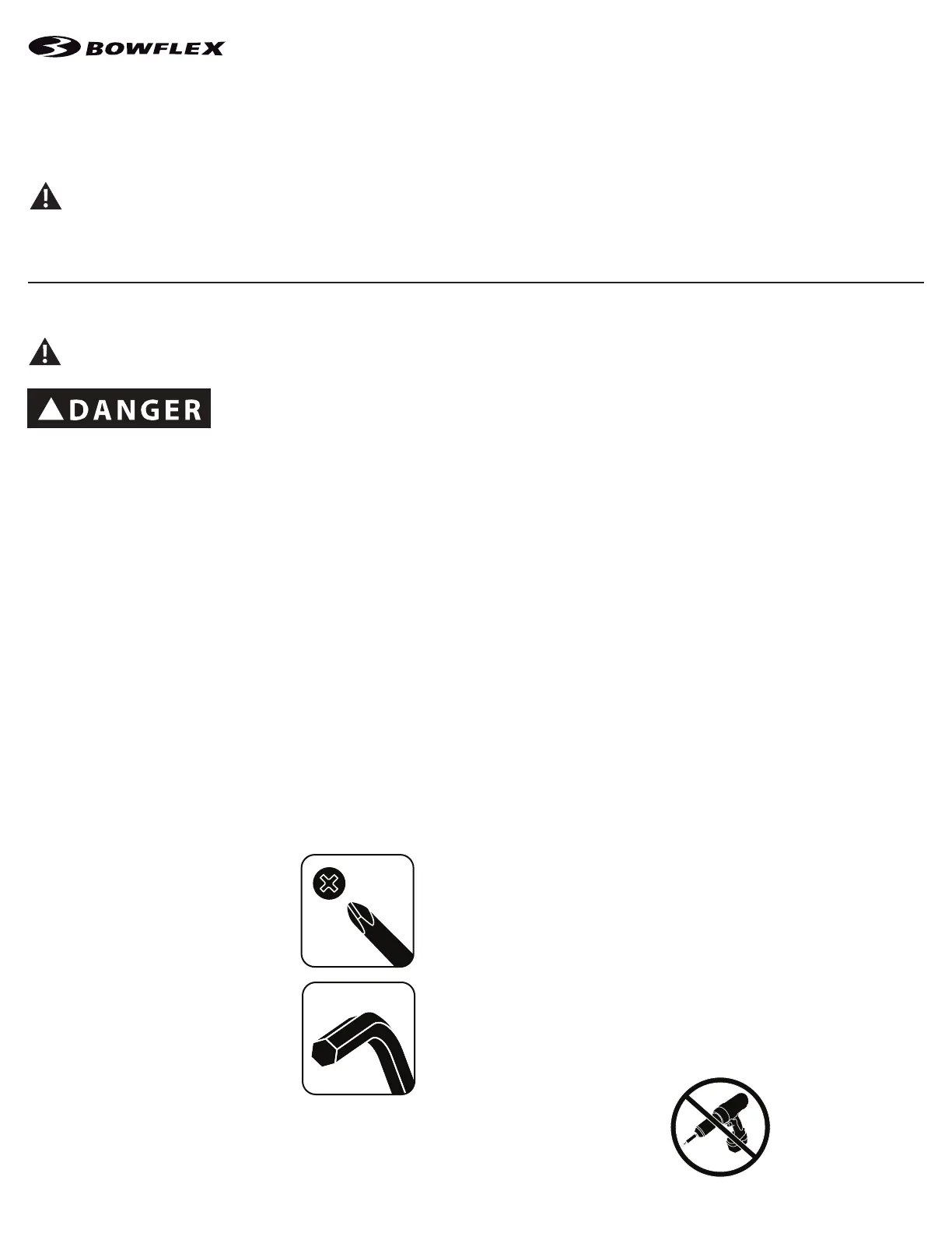 • If replacement parts are necessary, use only genuine Nautilus replacement parts and hardware. Failure to use genuine replacement parts can cause a