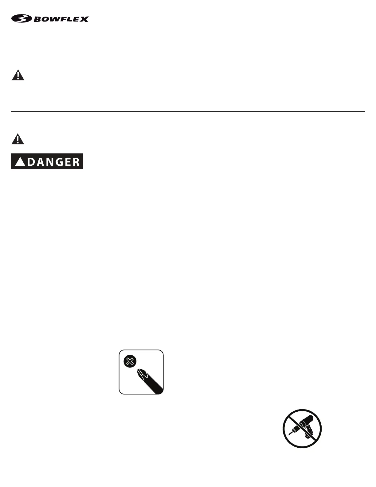 • If replacement parts are necessary, use only genuine Nautilus replacement parts and hardware. Failure to use genuine replacement parts can cause a