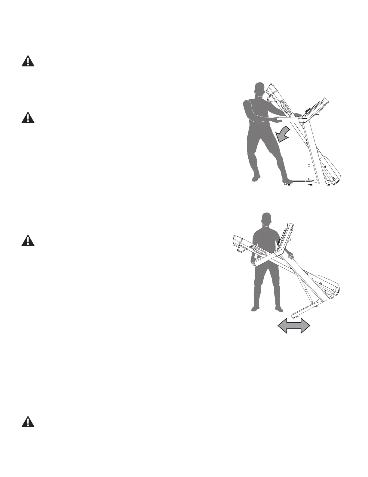 Do not use the Console or lifted Walking Deck to pivot or move the treadmill. Injury to