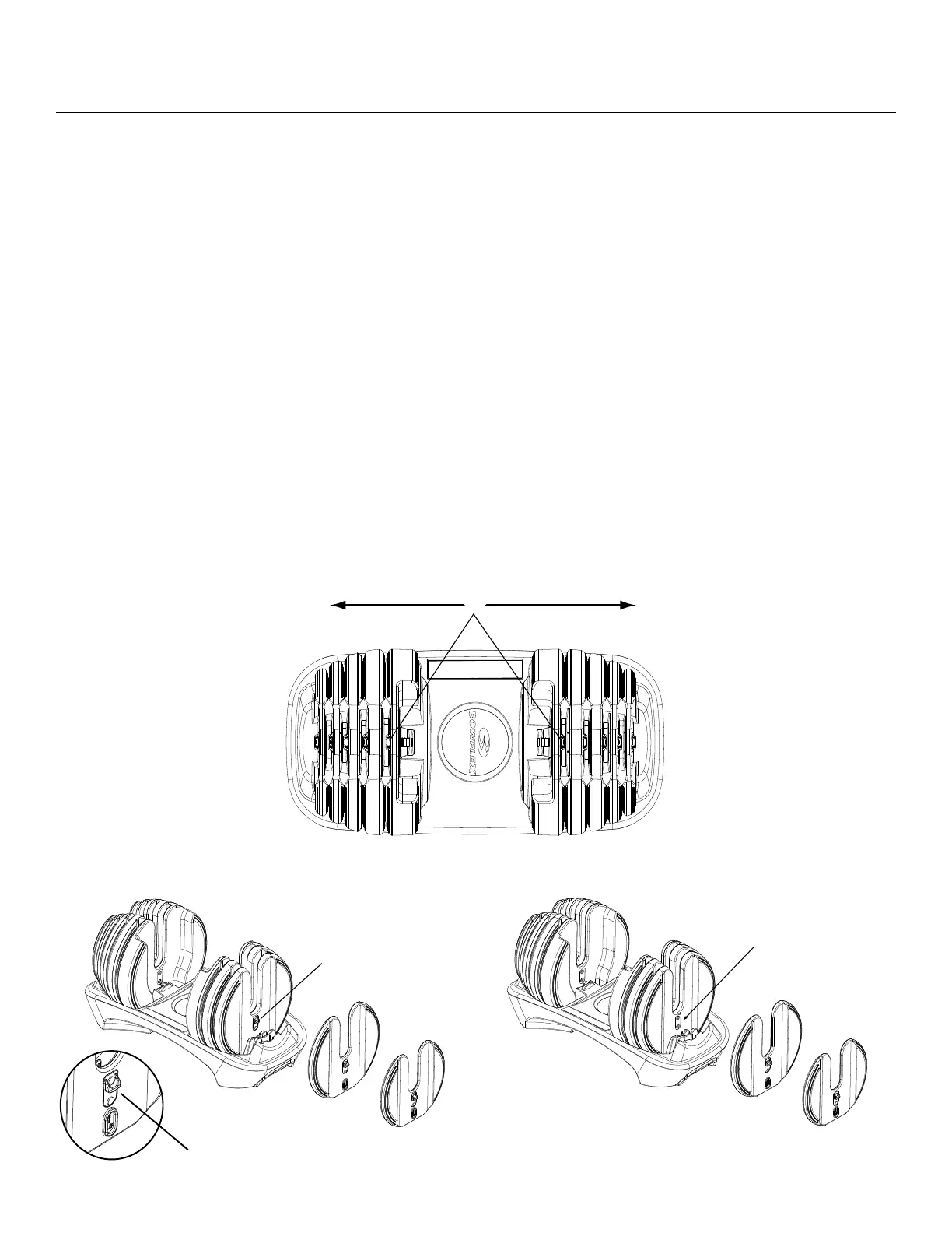 1. The mechanism will prevent deselecting (dropping) weight plates from the dumbbell when it is NOT in the dumbbell base.
