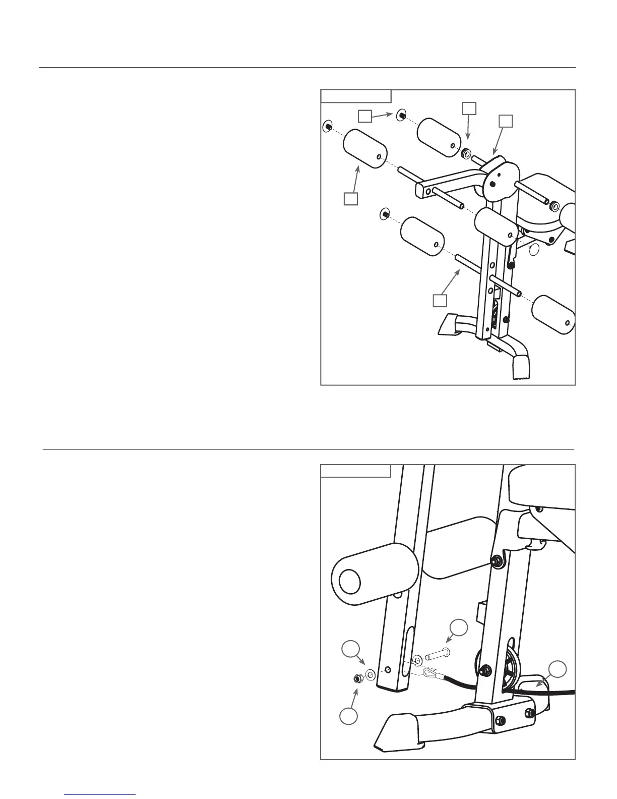 holes in the Leg Extension and cable end. Place (1) 3/8"