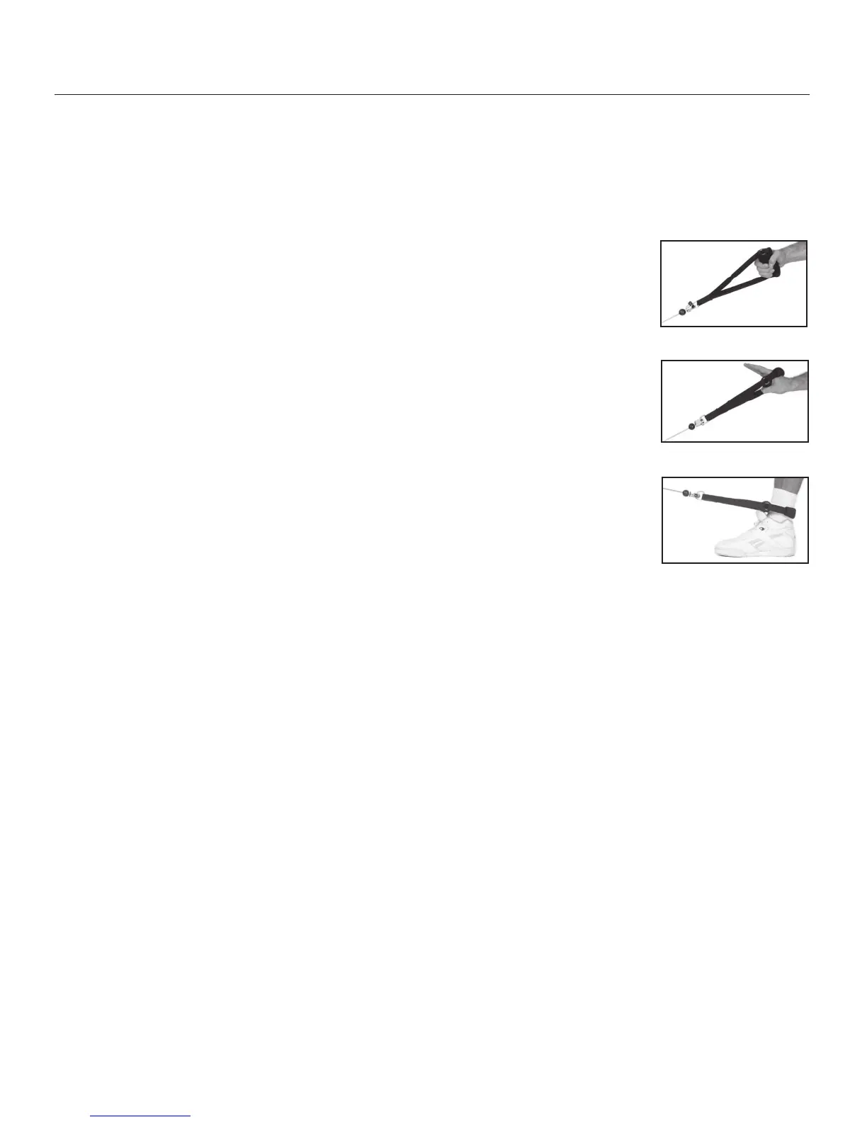 on the belt by pulling the strap until the belt is taut. You may grasp the belt near the cables