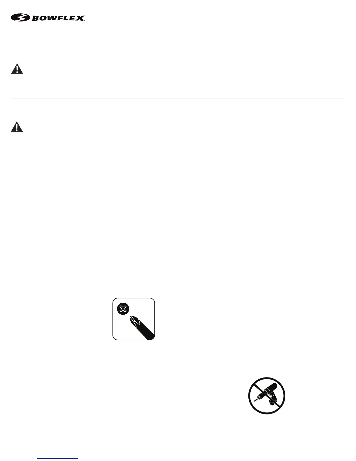 • If replacement parts are necessary, use only genuine Nautilus replacement parts and hardware. Failure to use genuine replacement parts can cause a