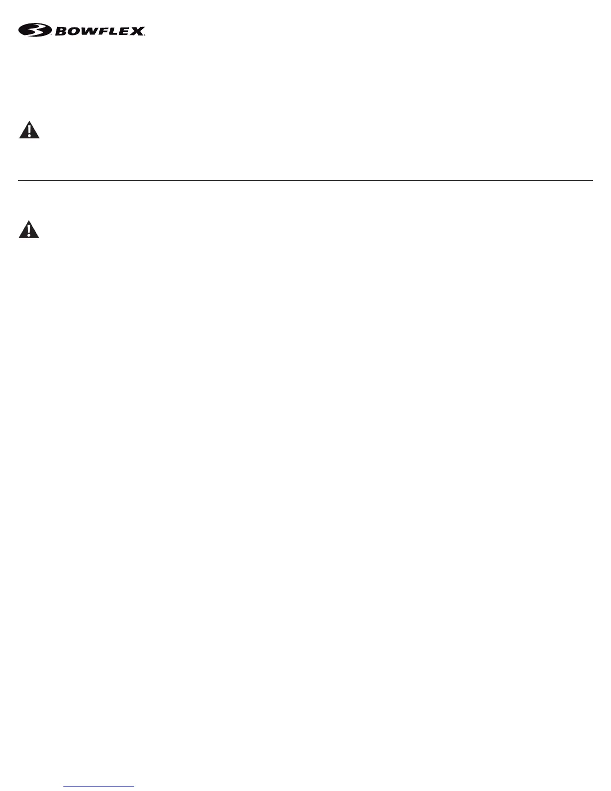 • If replacement parts are necessary, use only genuine Nautilus replacement parts and hardware. Failure to use genuine replacement parts can cause a
