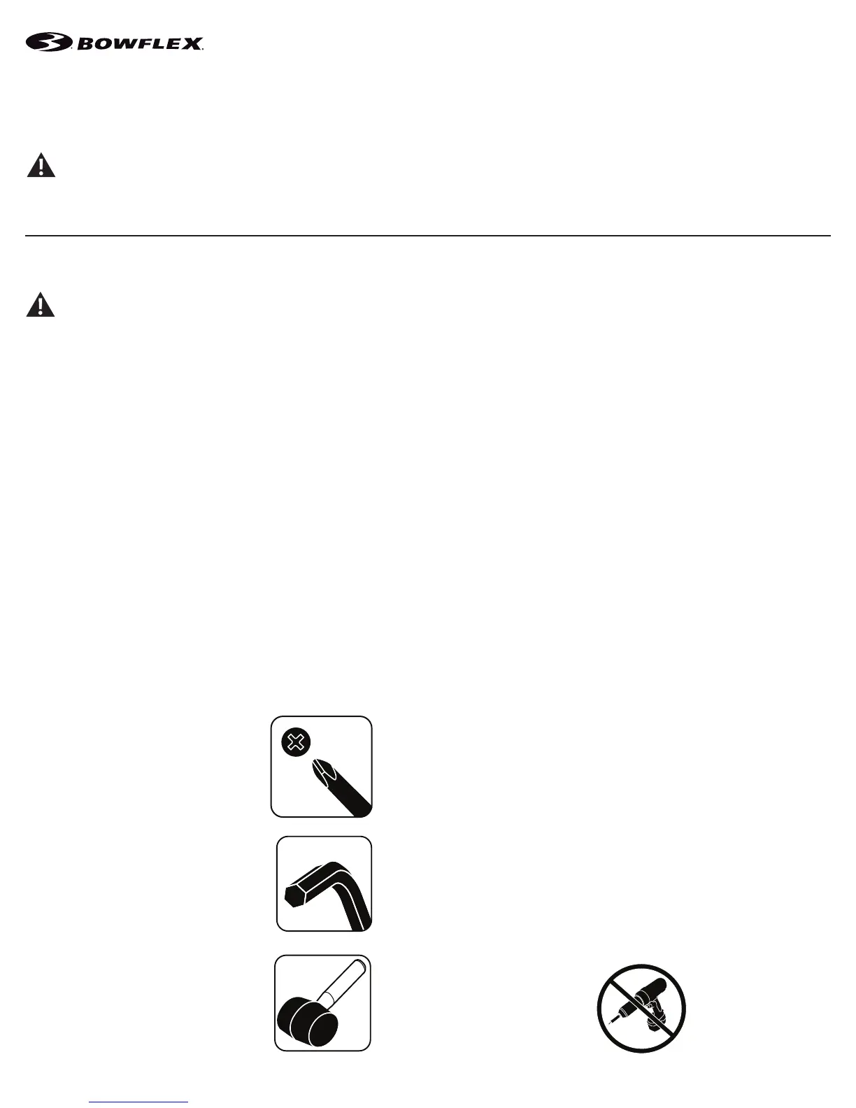 • If replacement parts are necessary, use only genuine Nautilus replacement parts and hardware. Failure to use genuine replacement parts can cause a