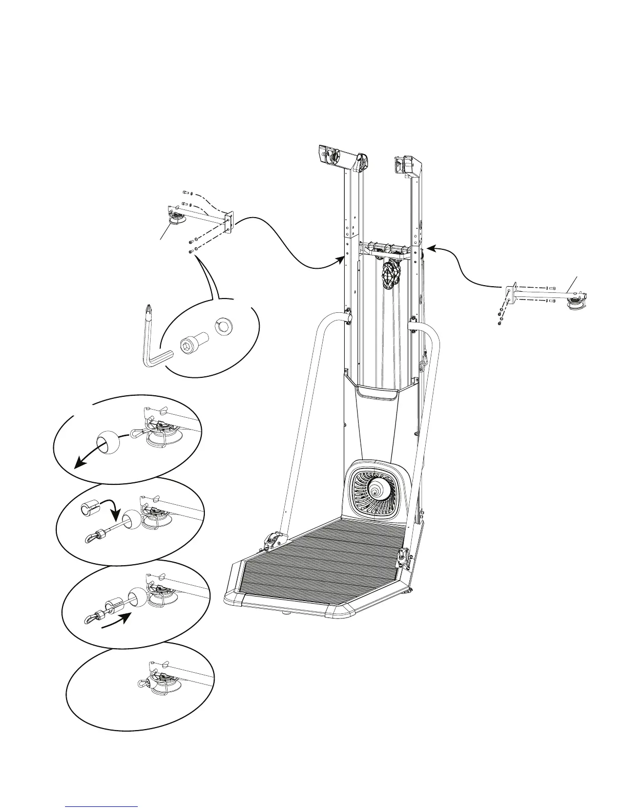 Note: The parts have a right (“ R ”) and left (“ L ”) mark to assist with assembly. If necessary, push the Upper Pulley Arms toward the back