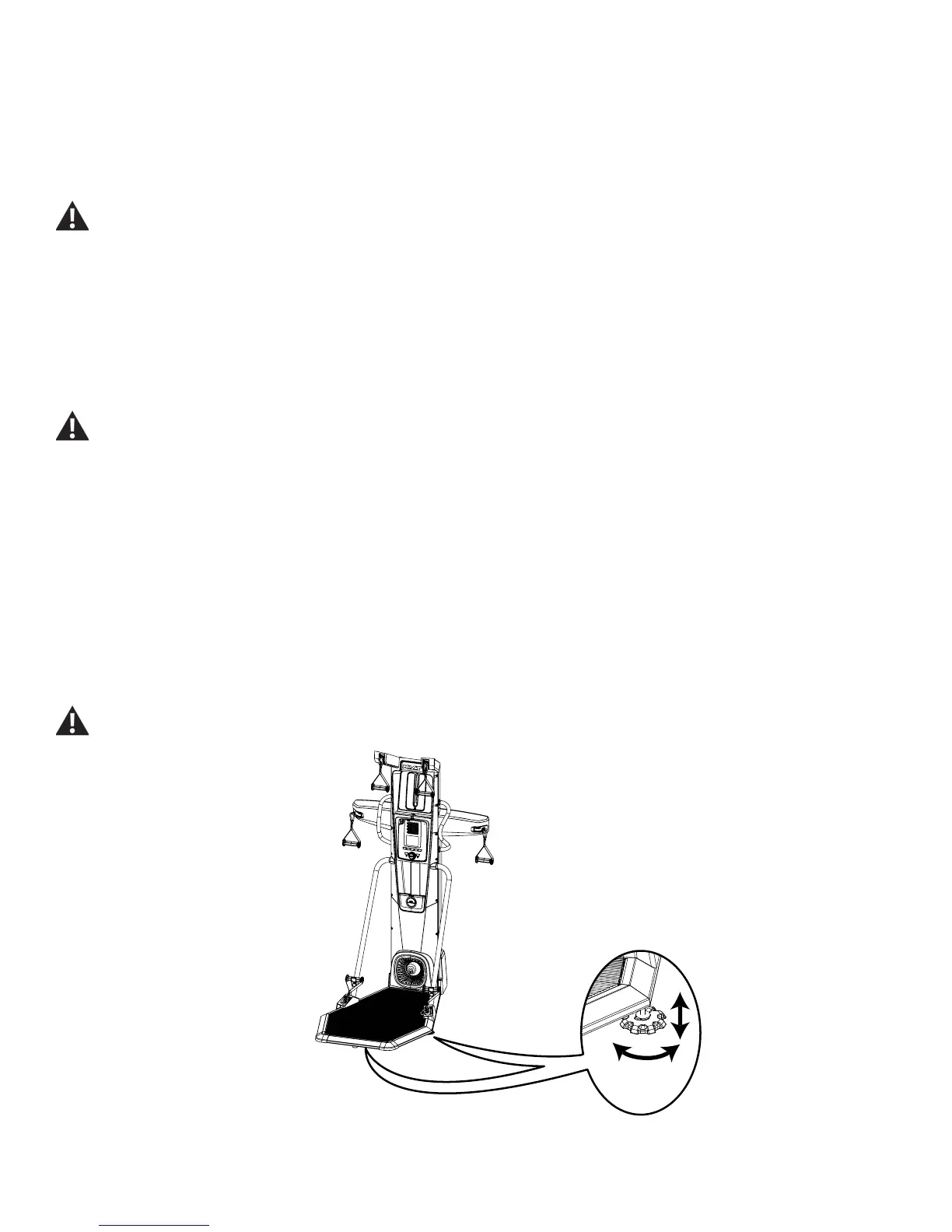 Do not adjust the levelers to such a height that they detach or unscrew from the machine. Injury to you or damage to the machine