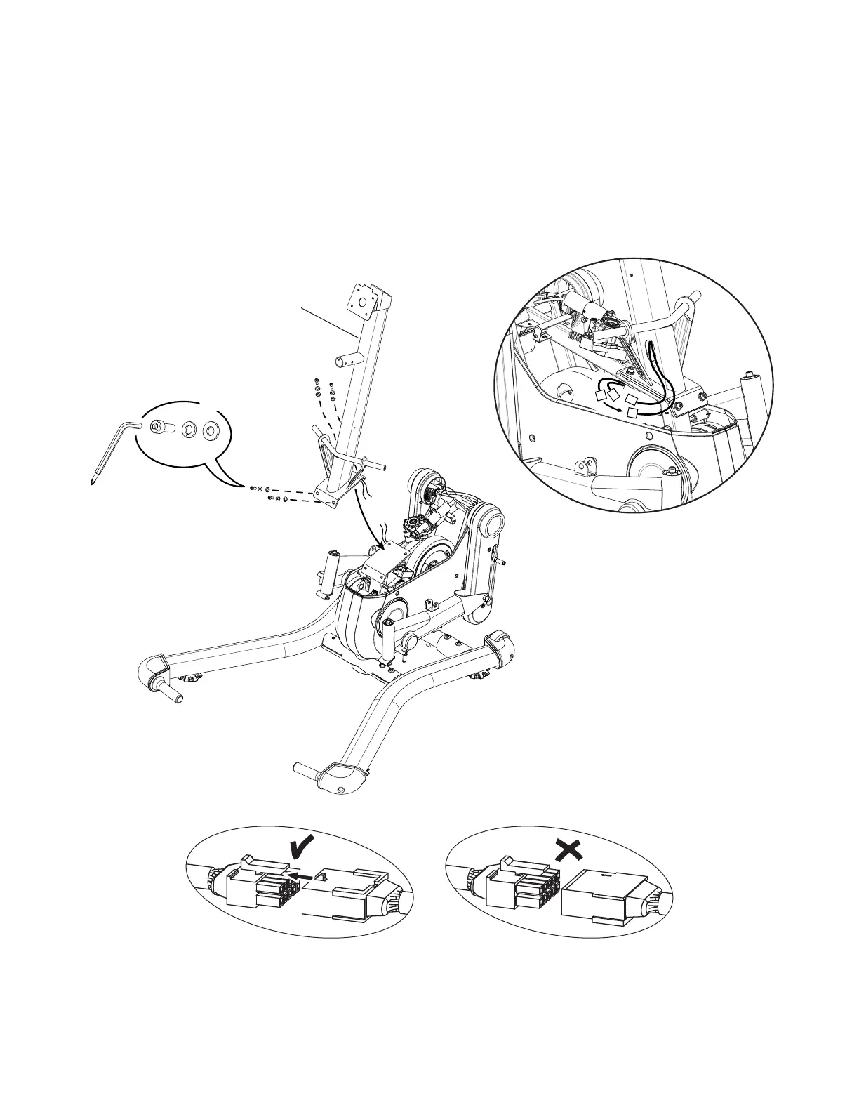 the cable connections are reversed, the Console will not turn on or the Static Handlebar buttons will not work. Do not crimp the